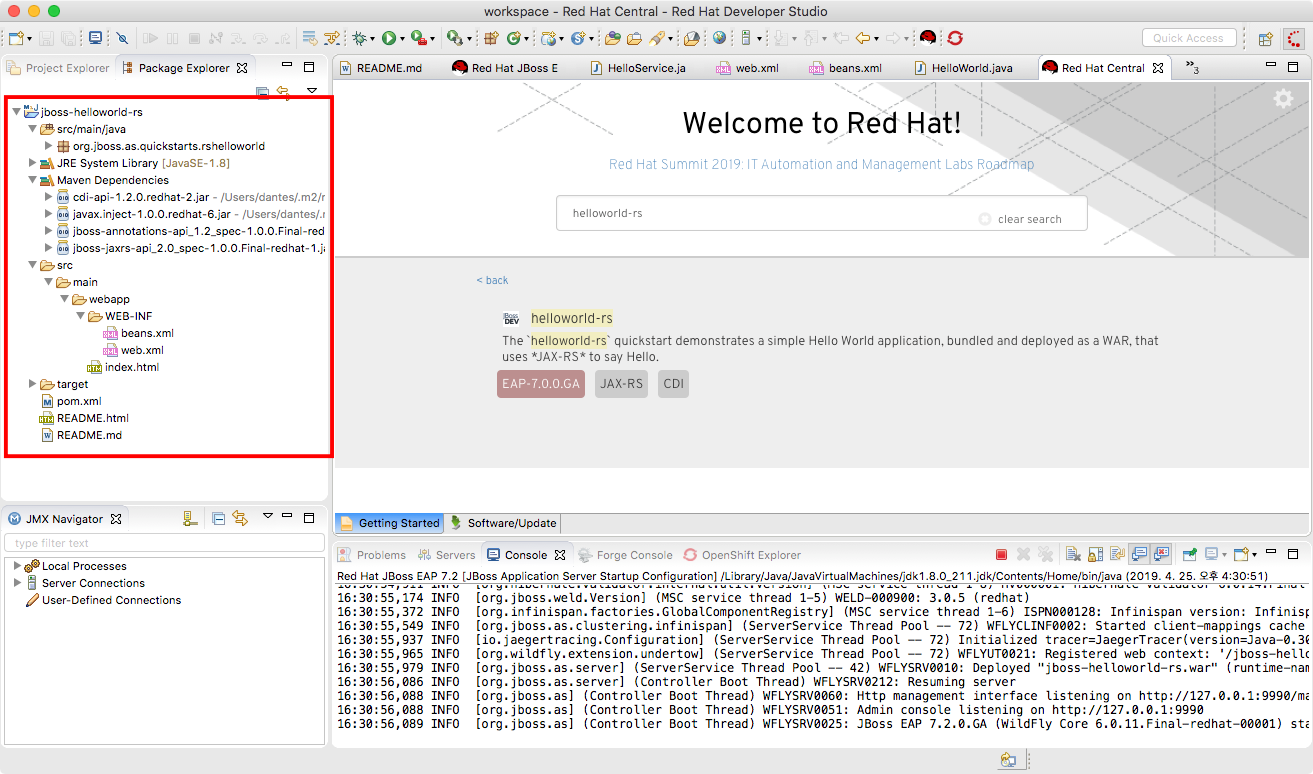 설치 매뉴얼 (https://developers.redhat.com/products/eap/hello-world/#fndtn-macos)