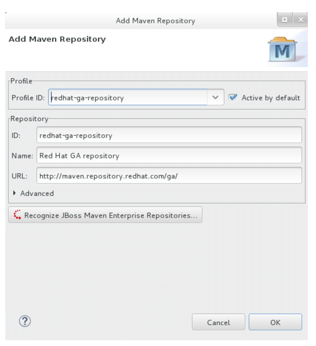 검색창에서 'maven'을 입력 후 'JBoss Tools/JBoss Maven Intergration' 항목에서 'Configure Maven Repositories...' 버튼을 클릭해 메이븐 설정을 다음과 같이 한다.