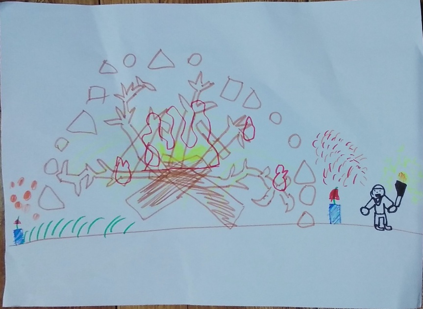 아이들은 어디선가 나무를 구해오고 불을 붙여 달라고 한다.
