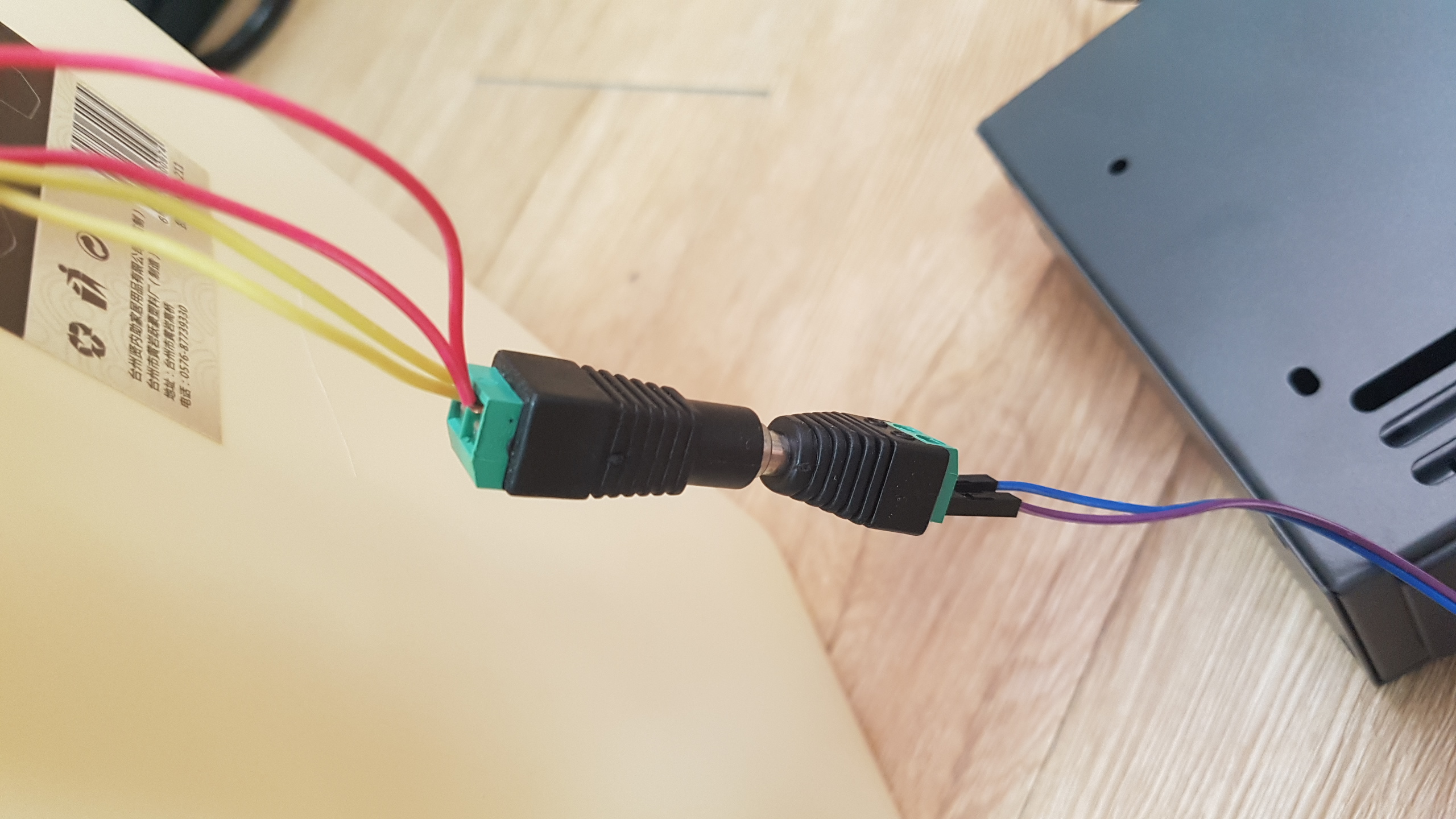 아크릴이 갈라지는 판에 좀 더 지저분하게 되었다. 휴지통에 구멍을 내어 전원선들을 빼낸 후 전압발생기에 연결하면 완성.