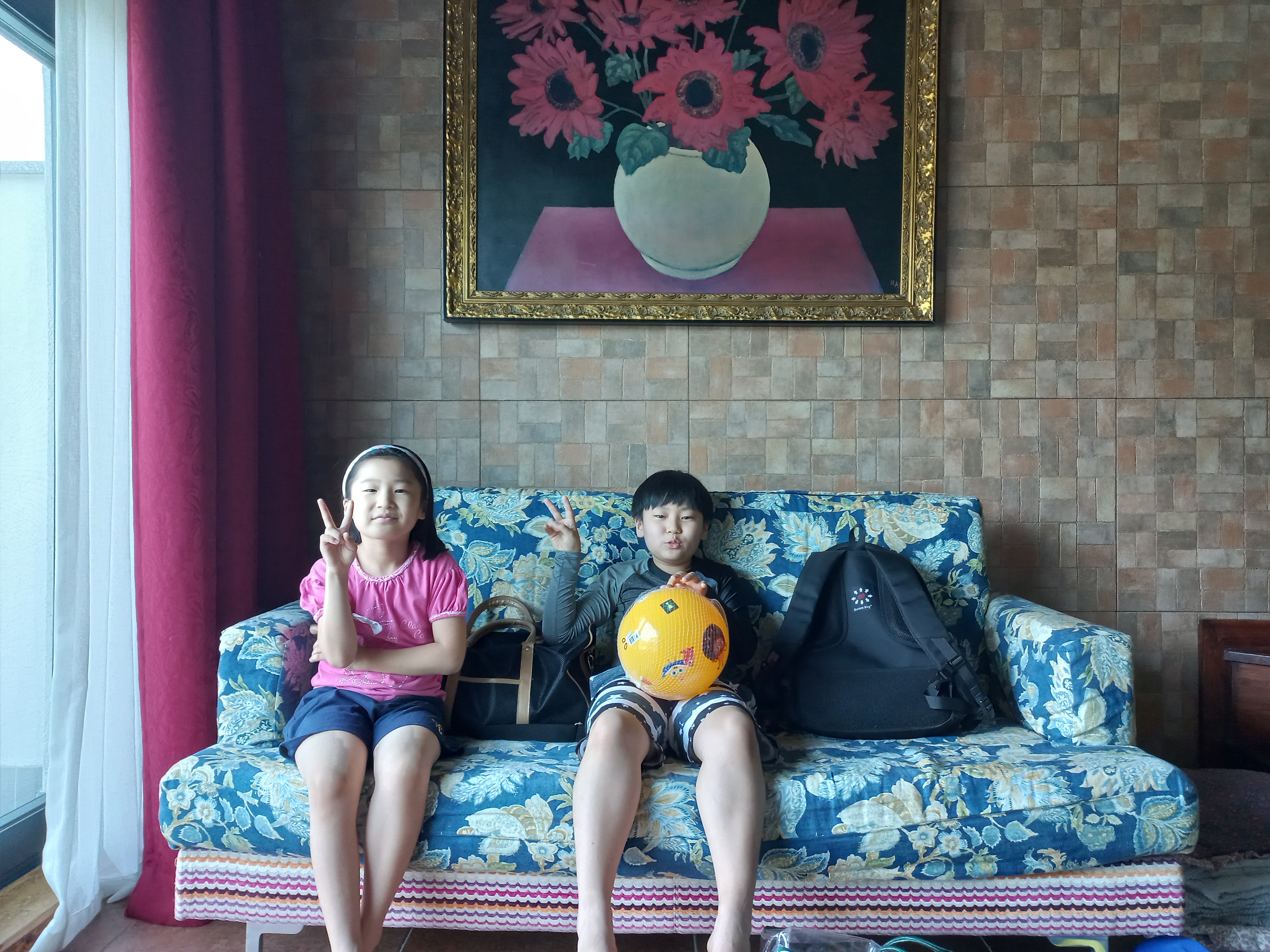 오자마자 짐도 못풀고 튜브에 바람 먼저 넣고 있다.