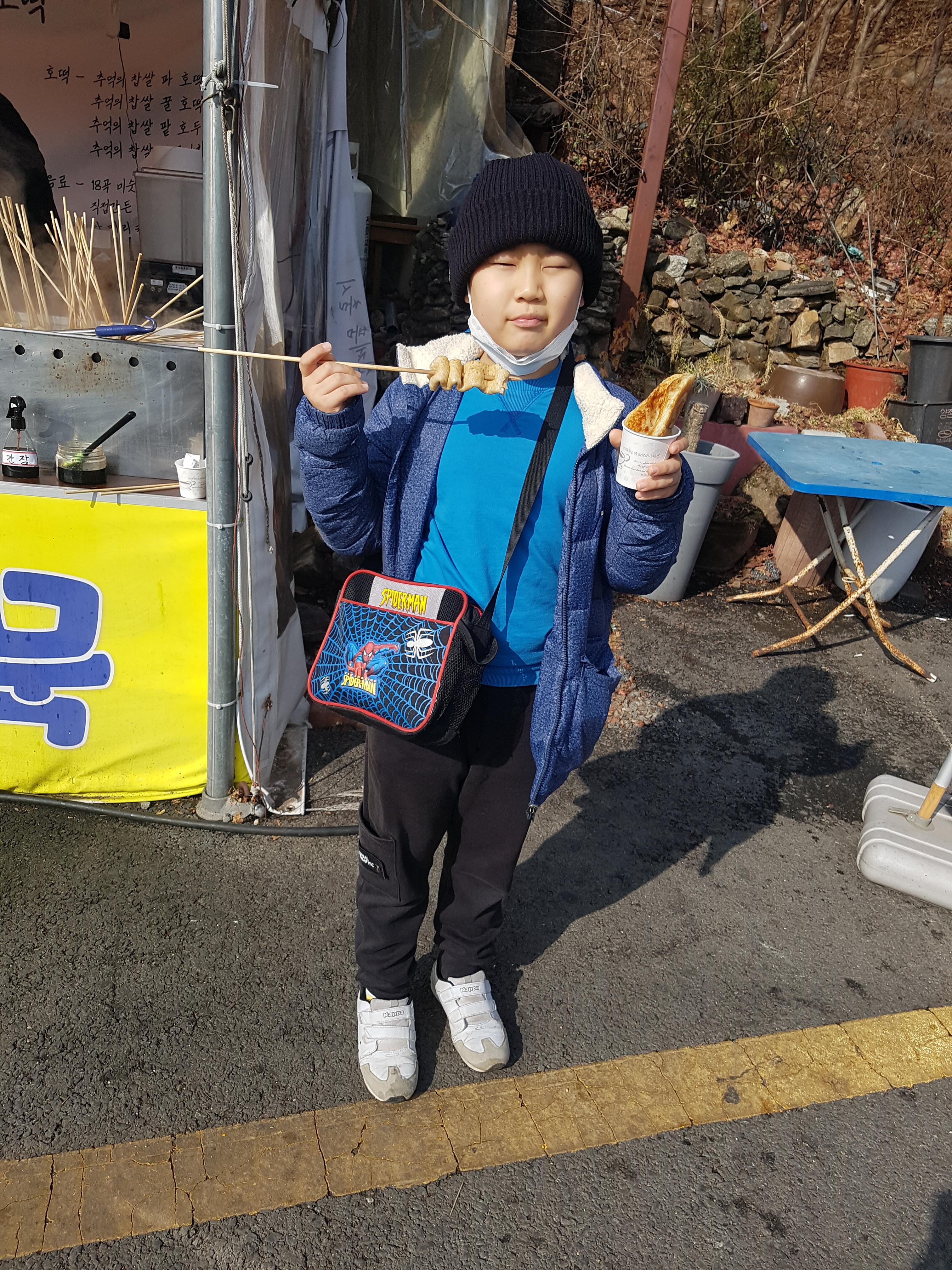 사진 속 옆에 막걸리는 비밀 대전은 눈이 거의 오지 않았지만 조금 아랫동네인 이곳은 눈이 많아 살짝 놀랐다. 대전이 워낙 눈 비가 오지 않기에 올해는 정말 그렇게 생각했다. 오늘 이곳에 왔고 자취를 남겼으니 다시는 안 오겠지. 아들 추억 속에 아빠와의 한 컷이라도 남아 있으면 그걸로 됐다. 딴말하지 않도록 이렇게 증거도 남긴다.
