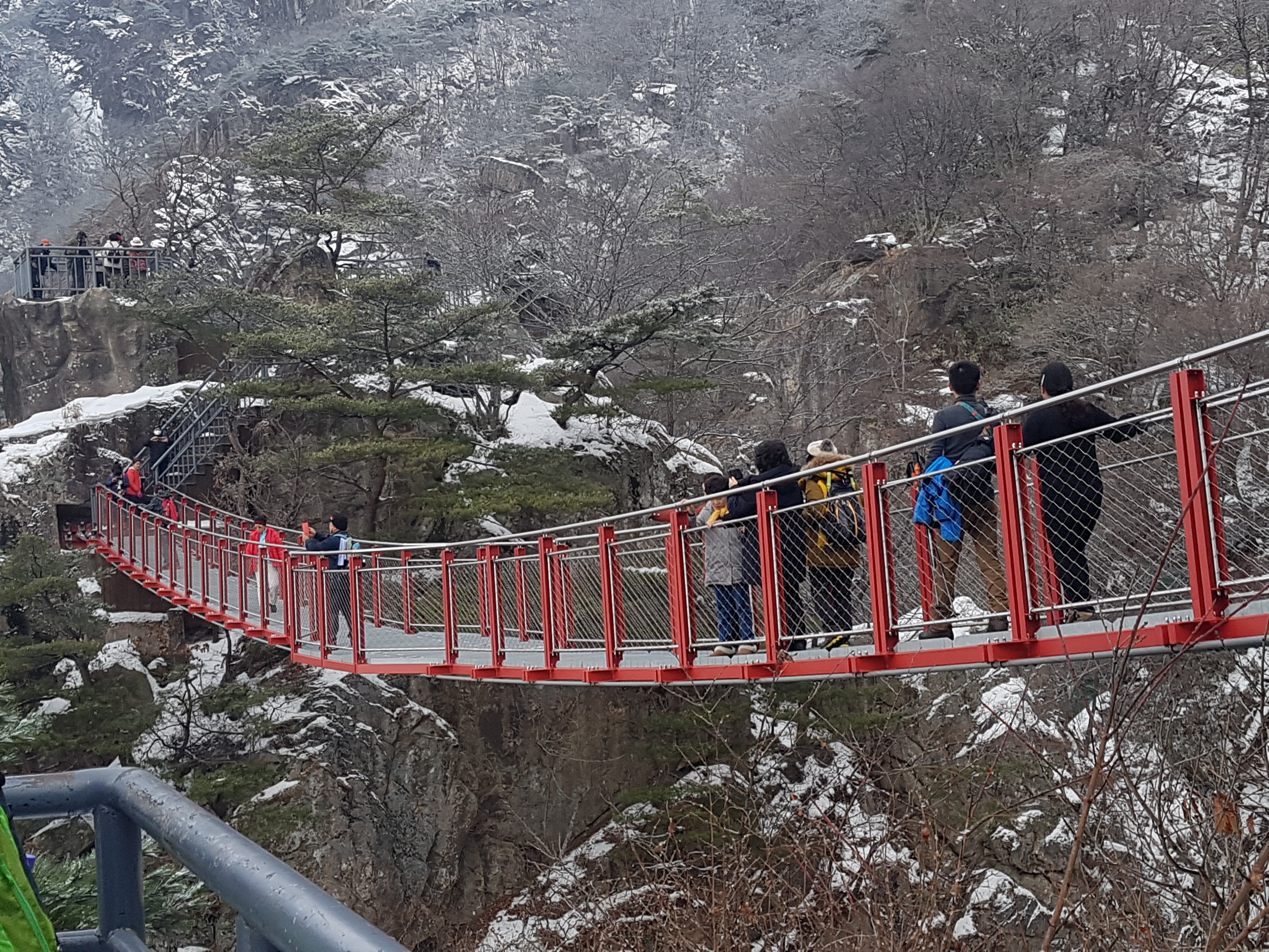 전 회사에서 워크샵으로 무주를 간 적이 있었는데, 당연히 스키나 보드를 탈 줄 알았다. 그런데 옆 케이블카를 타고 정상만 갔다가 다시 돌아왔다(?) 그래서 기억에 남는 워크샵이었다. 산 정상은 온통 눈밭이었고 매점 같은 것이 있었던 것으로 기억한다. 매우 추웠다. 한 번은 다시 가보고 싶다는 생각을 했었는데, 그 산 이름이 도통 생각이 나지 않았다.(지금 생각해 보면 덕유산이었던 것 같다.) 주변(대전)에서 케이블카를 탈 수 있다는 곳이 있다 하여 대둔산으로 향했다. 내가 원했던 산이 아니라는 건 케이블카를 타고 도착하고서였다. 정상까지 가지 않았고 중간이 마지막이었다.