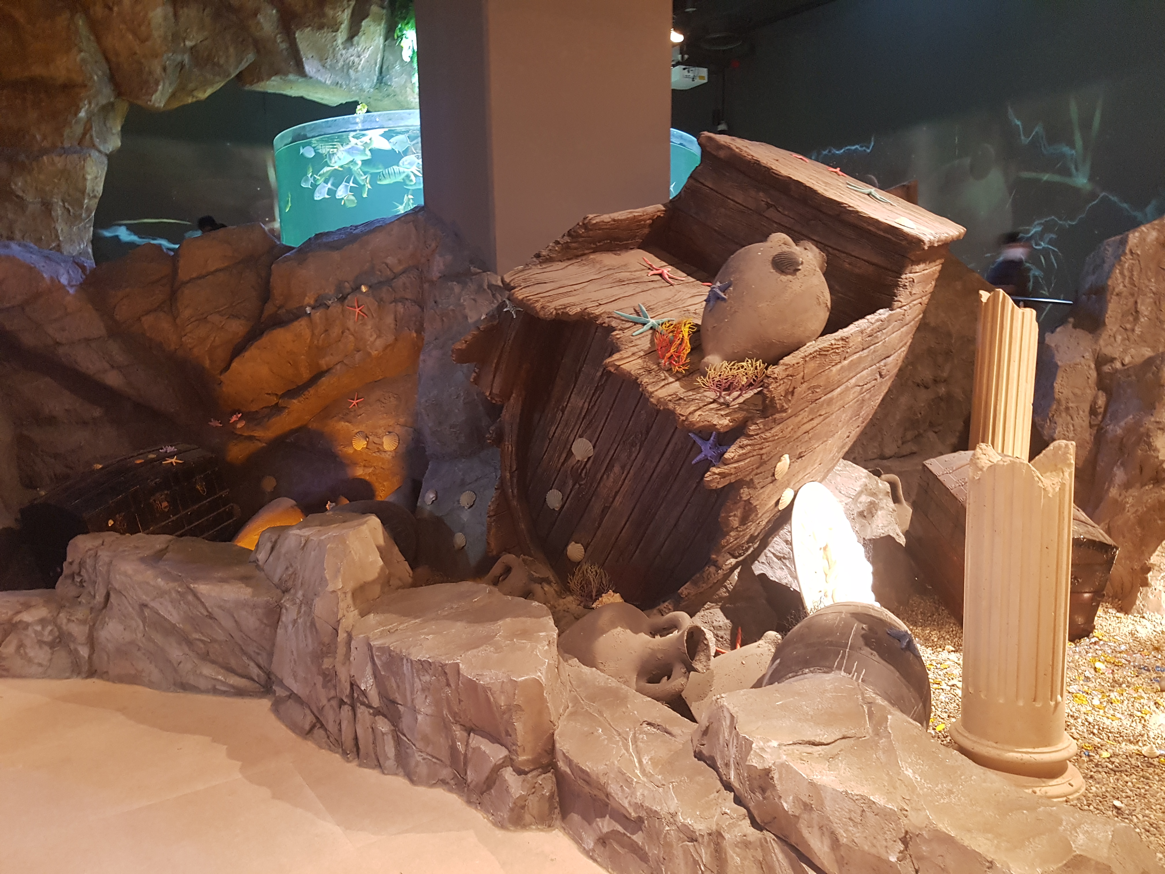 물고기 로봇이다. 신기하다 잉어 물고기 밥 자판기 사실 더 많이 있었는데 사진으로 찍지는 못했다. 사진 찍는 것이 목적이 아니니 눈으로 많이 담았다. 아이들도 괜찮게 본 것 같다. 나름 테마도 있는 것 같고, 마술쇼, 수중발레(?), 아이들 좋아하는 볼풀(?) 등 여러 가지 볼 것과 놀 것이 많았다.