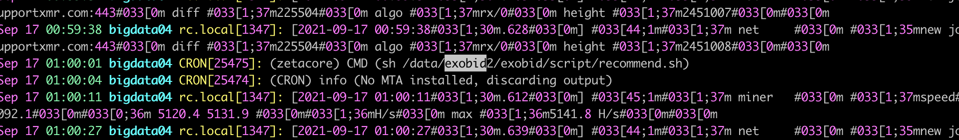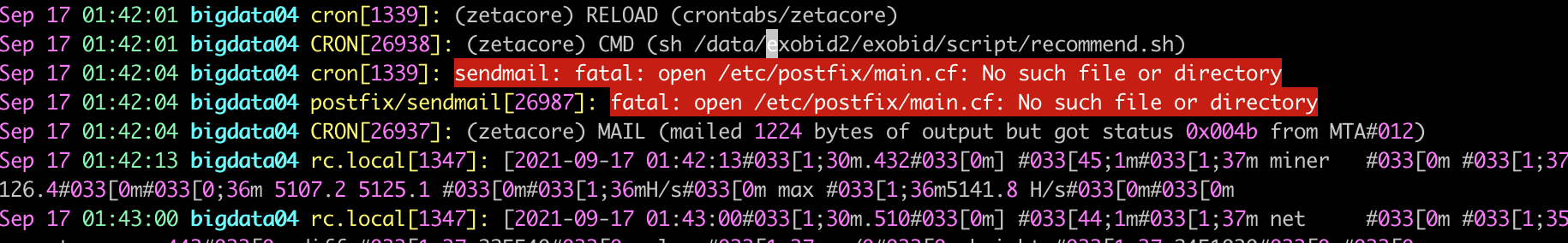 cron 실행 후에는 결과를 root에 메일을 보내는데 보내지 못해서 발생한 오류다.