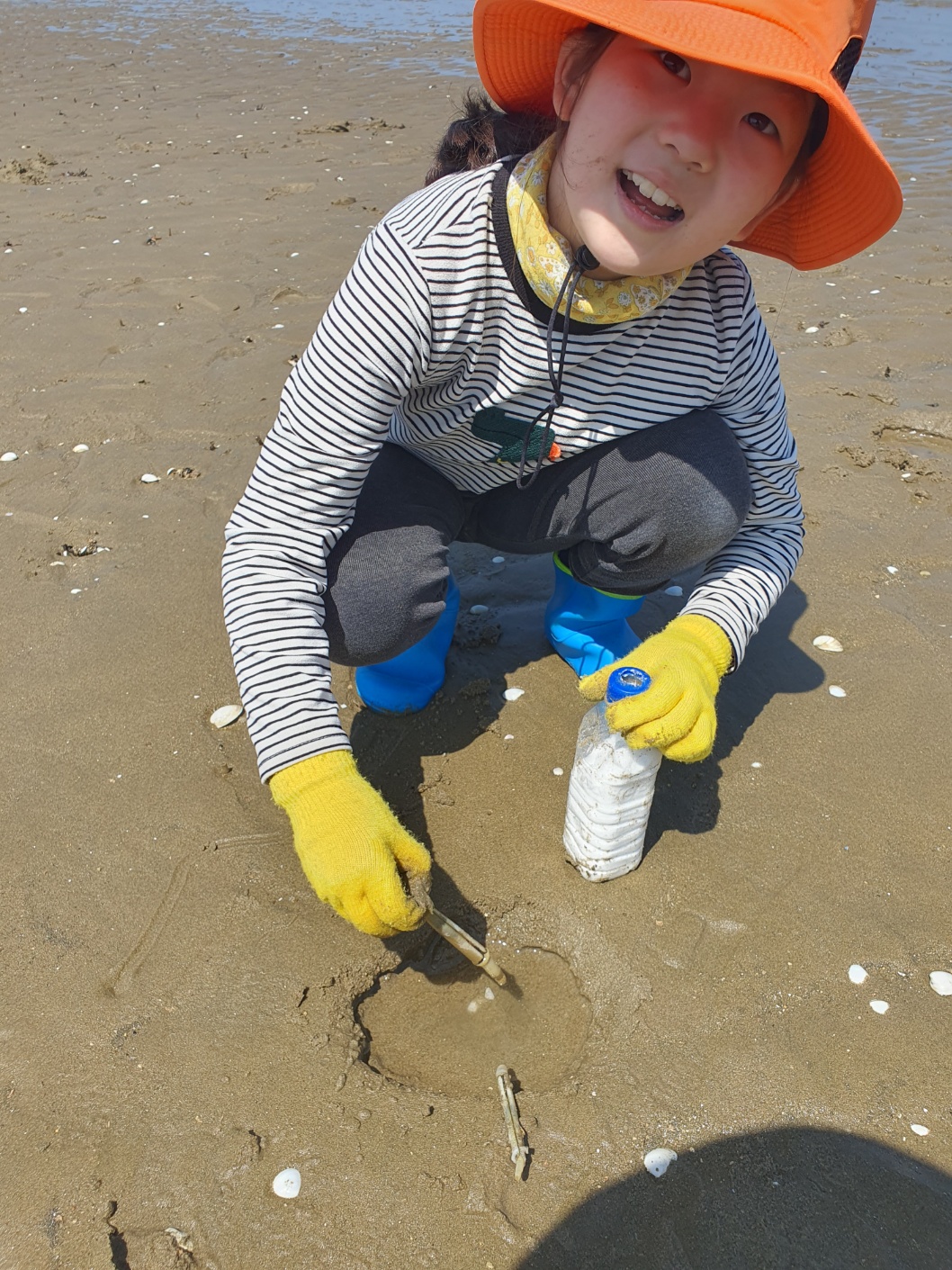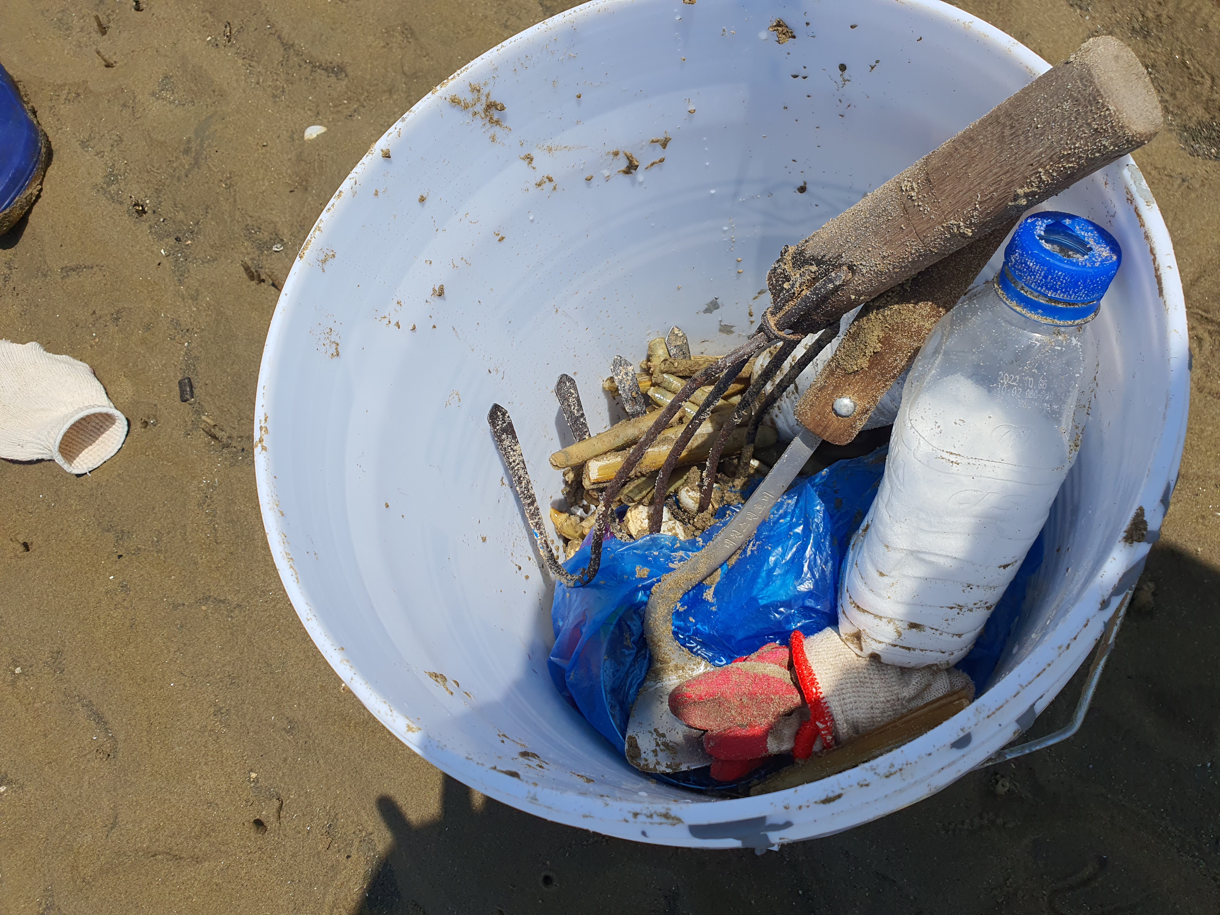 물병에 소금을 넣고, 조개 캘 수 있는 것(?), 삽, 작살등을 준비한다.