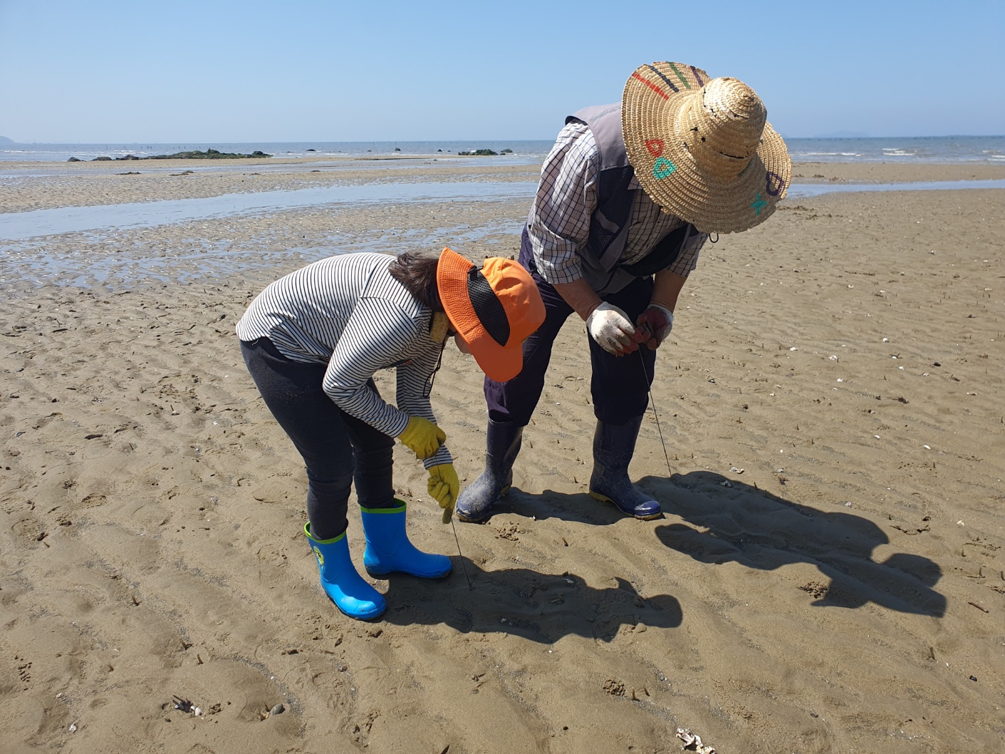 가기 전에 고향에 물이 많이 빠진다고 하여(고향이 바닷가 근처다.) 간 김에 맛조개를 잡기로 했다.