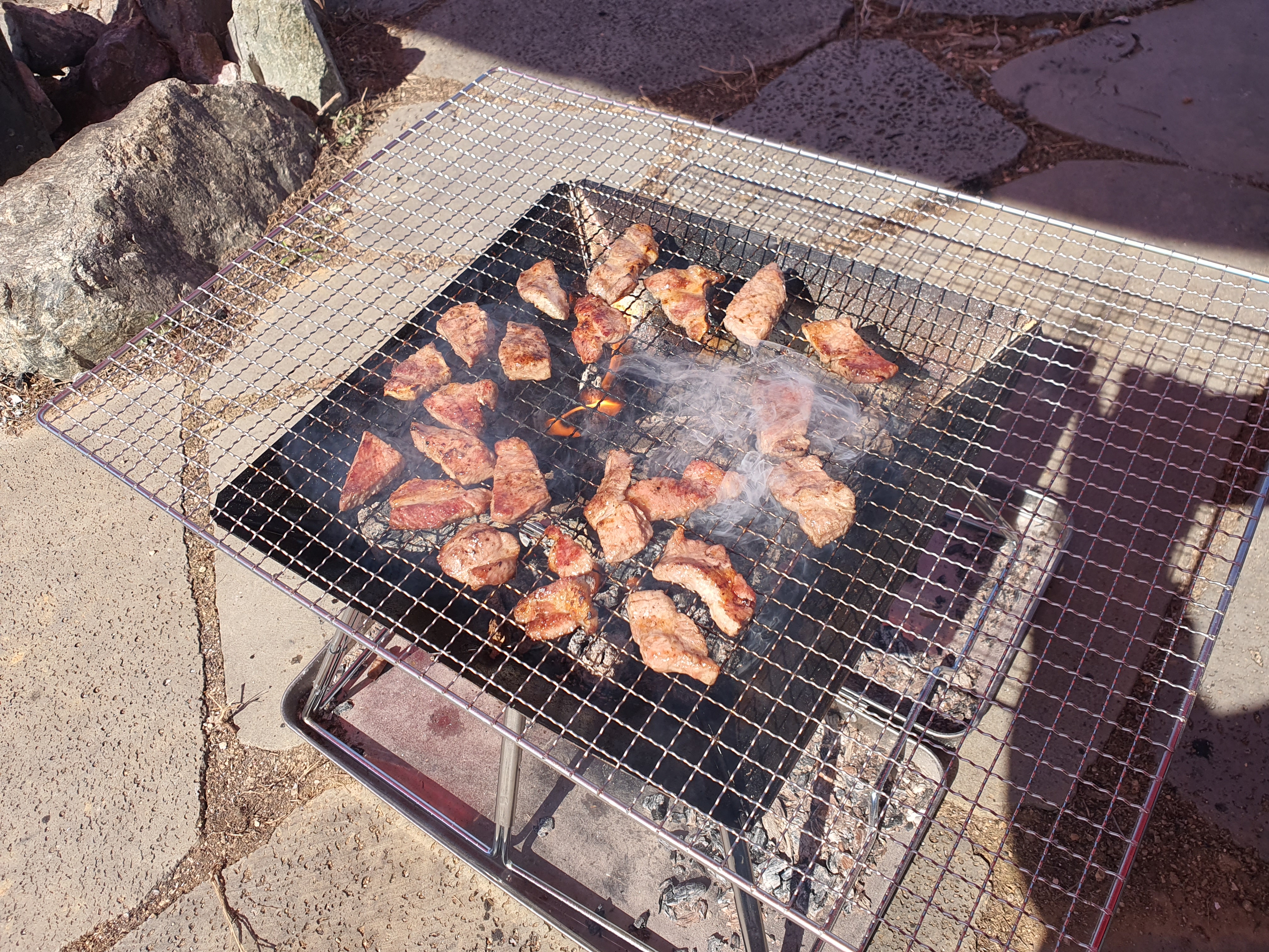 숯불로 고기를 구워 먹으려고 했는데 직접 나무를 태워 숫을 만들려니 시간이 좀 더 지체되었다.