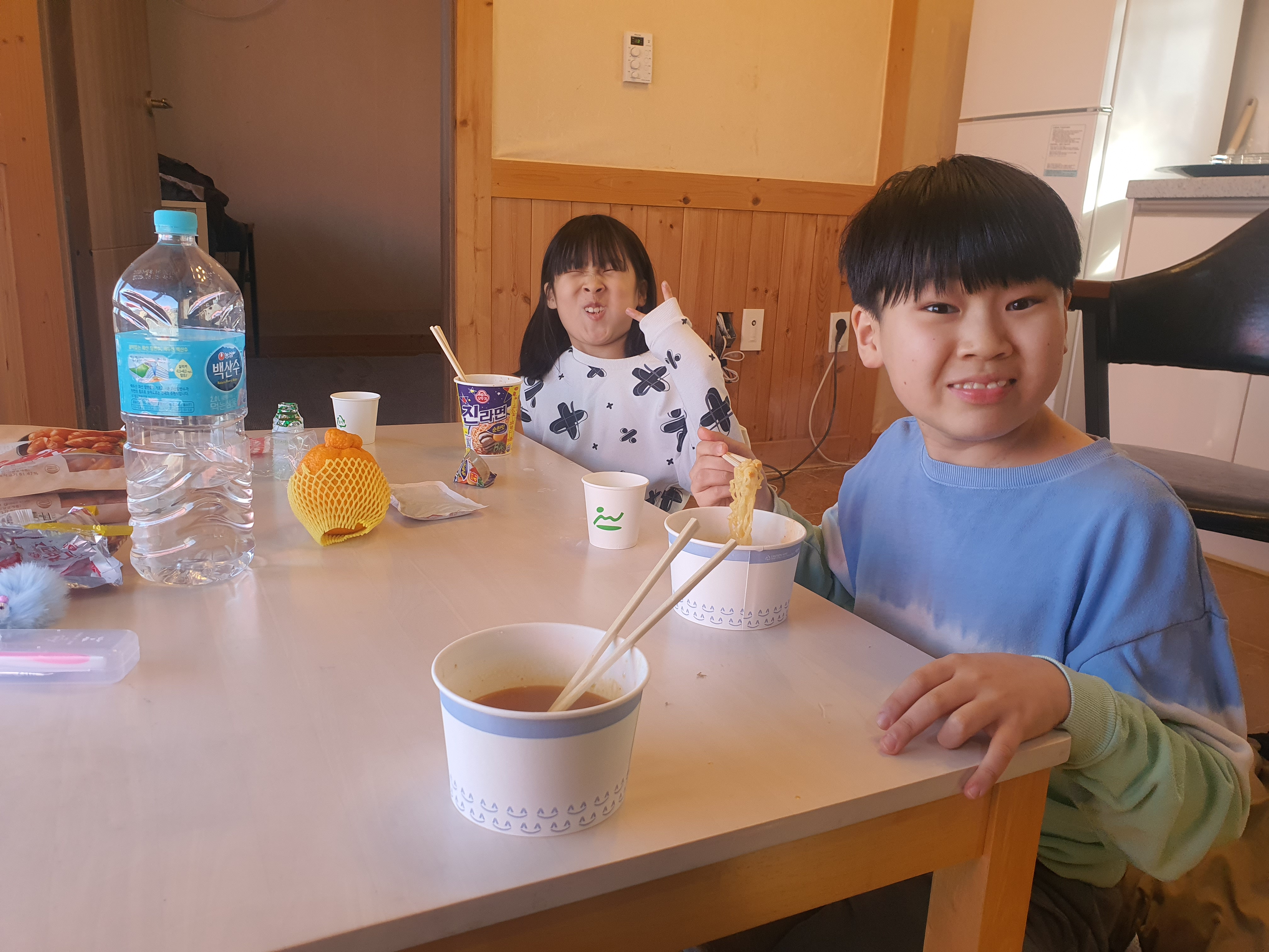 배불러서 못 먹을 줄 알았는데 라면 먹을 배는 남겨놨단다. 기특한 녀석들 라면도 남김없이 다 먹었다.