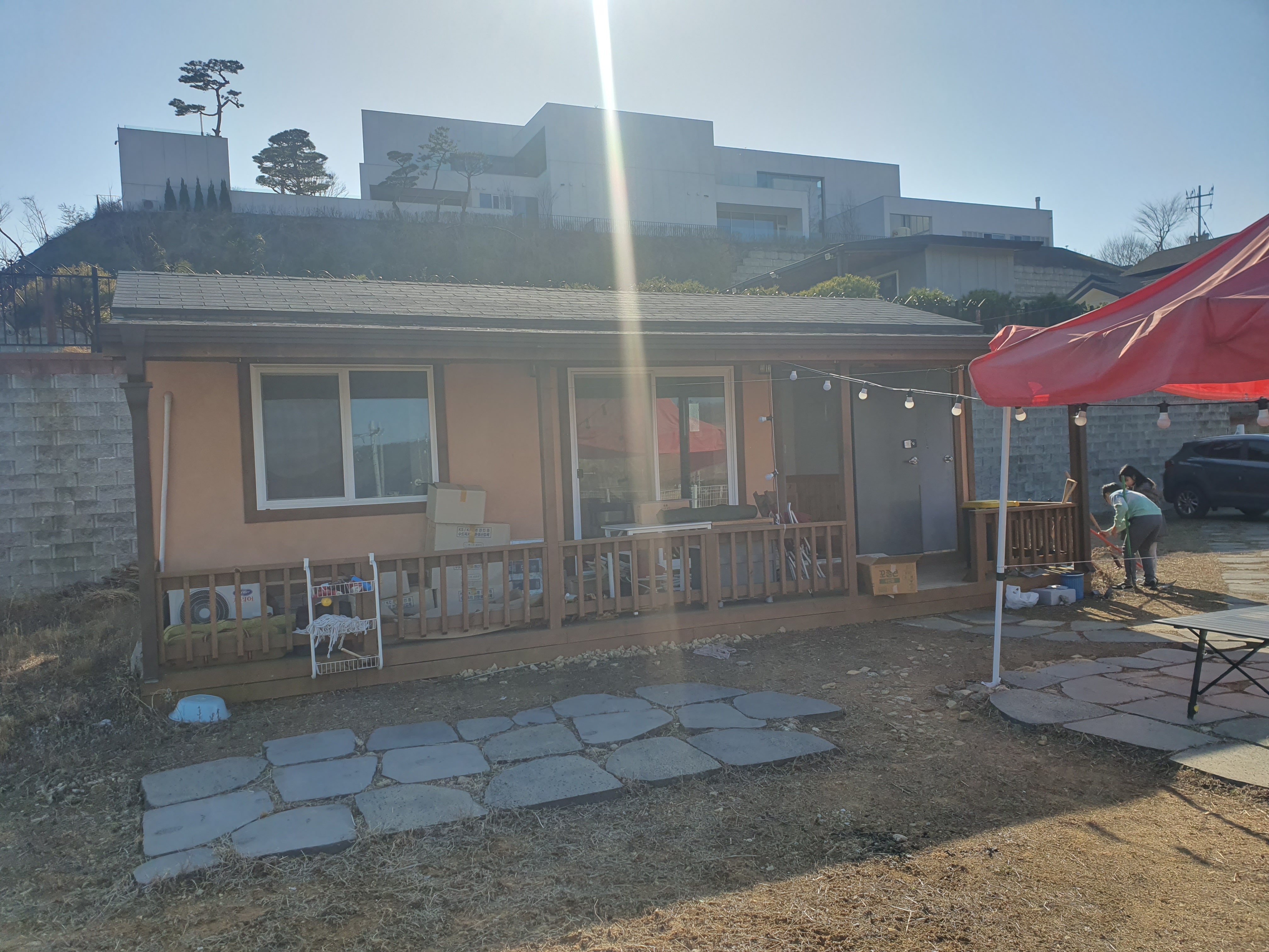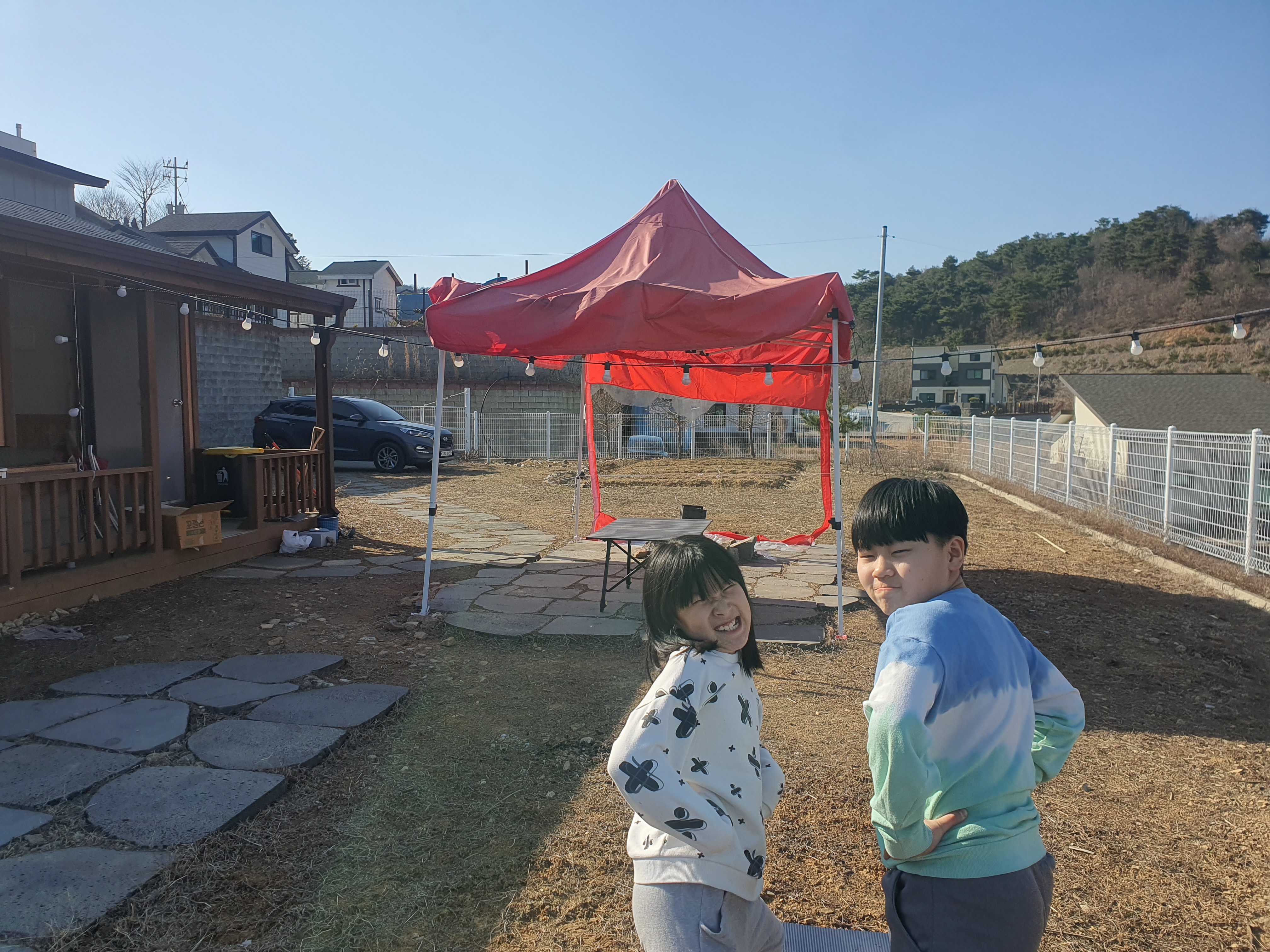 아들과 딸이 뭔가 심기에 뭐 심니? 물어보니 잡초를 심는단다. ㅡ,.ㅡ; 숙소에 배치된 소주와 맥주를 먹지 못한 것이 아쉽고, 농구공을 가져가 아들이 노는 것에 만족한다.