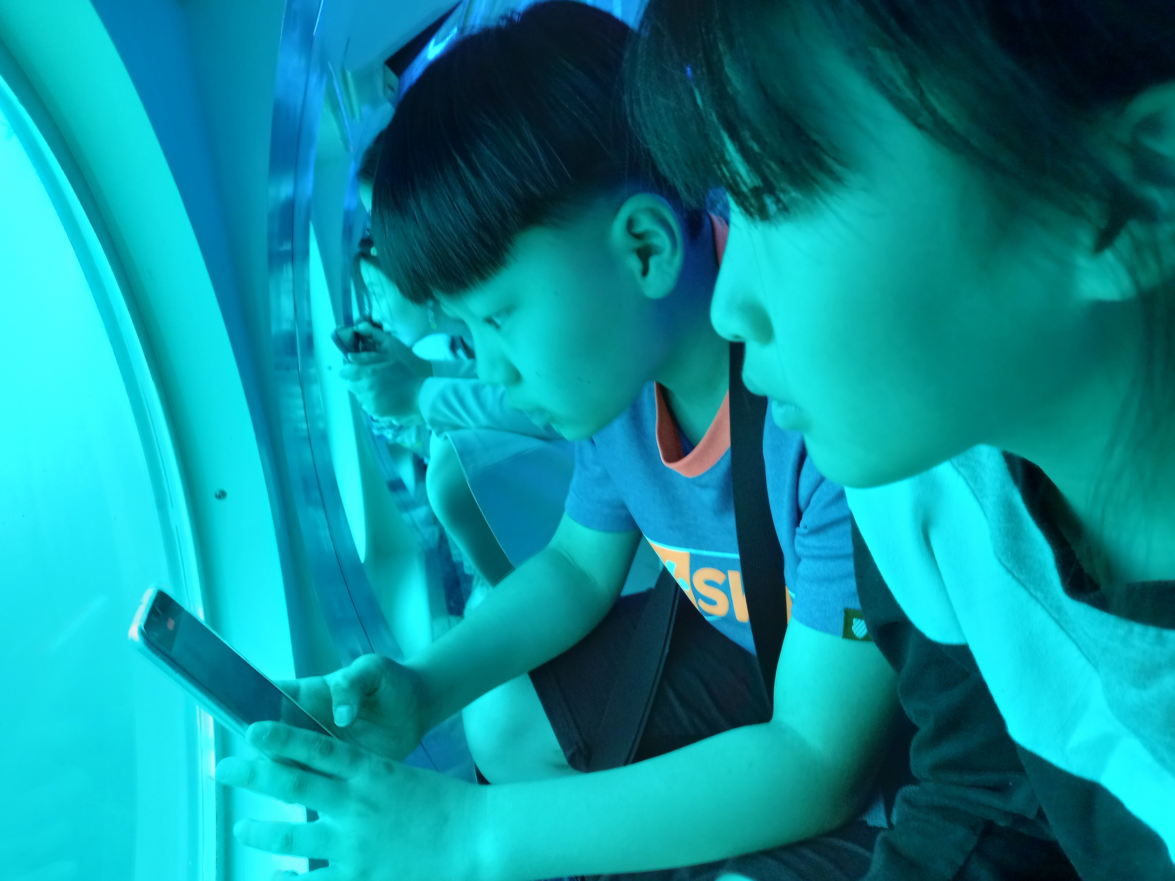 잠수정 좌우로 앉아 구경을 하는데, 코스에 따라 맞은편을 봐야 하는 경우가 생긴다. 그러면 맞은편을 보면 이미 자리에 앉아 있는 사람들이 있어 조그마한 창으로 밖을 보기가 어렵다. 그러면 어른들은 먼저 아이들에게 볼 수 있도록 자리를 양보해 준다. (음.. 착하군)