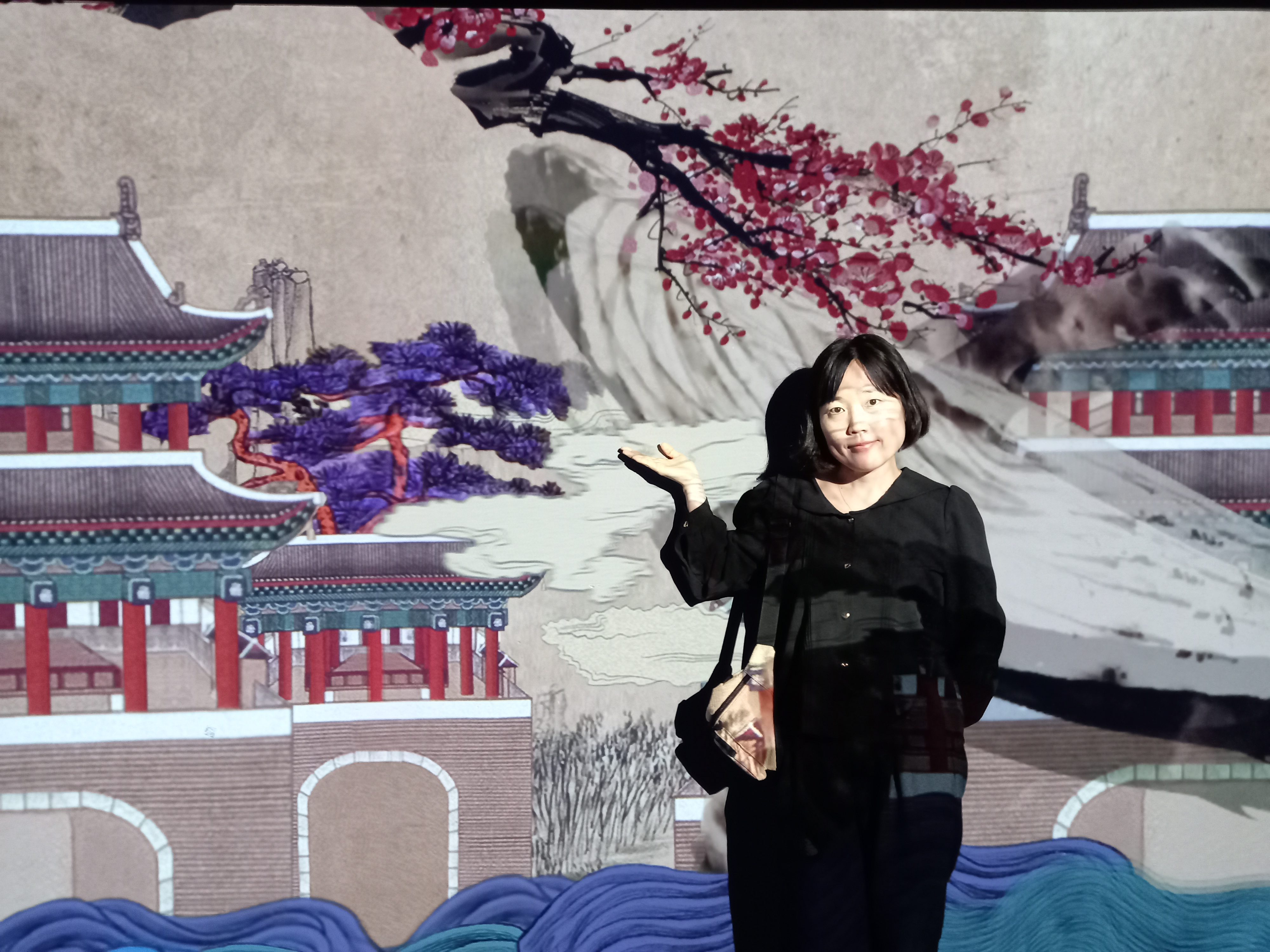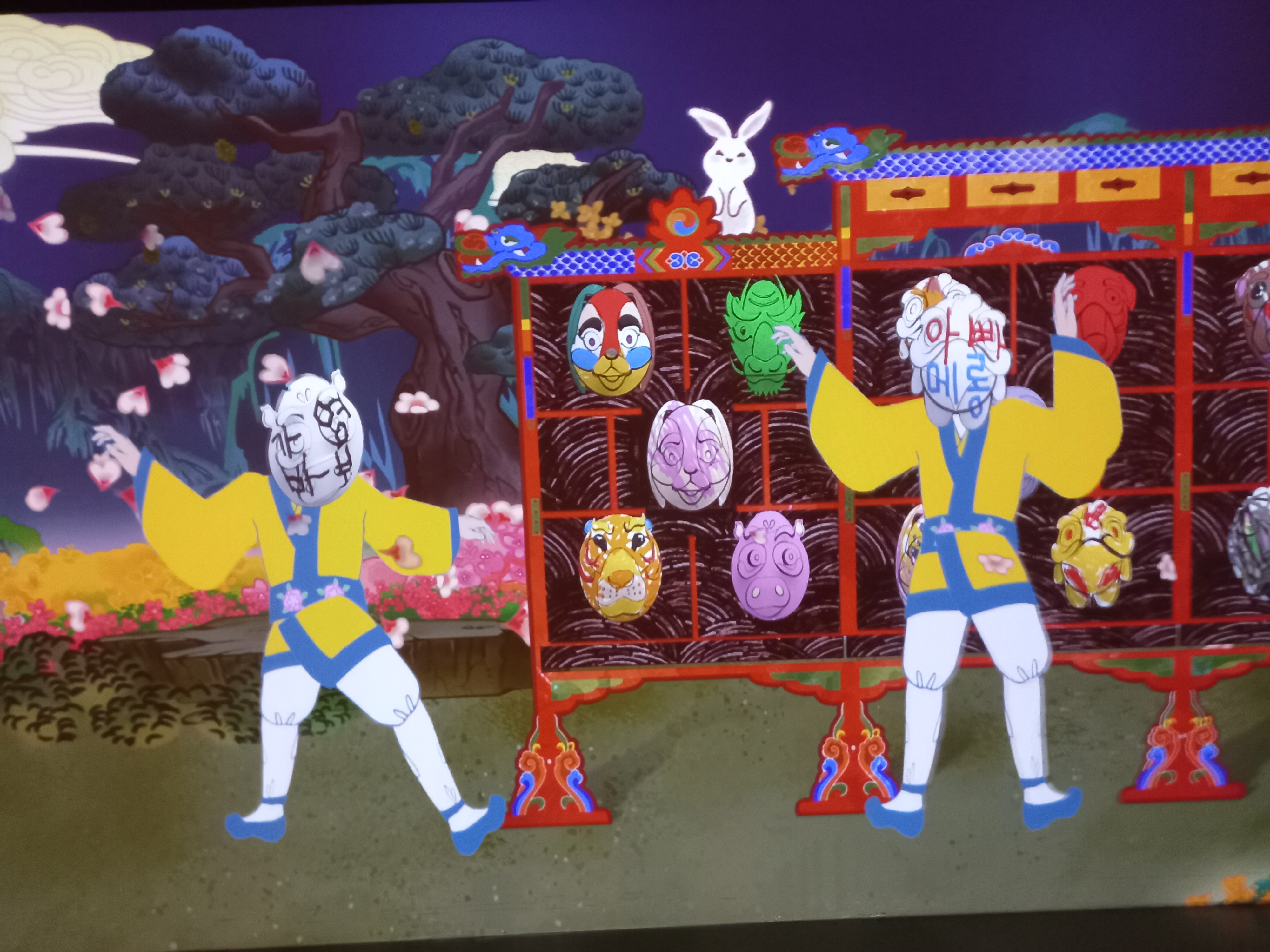 만든 가면을 대형 스크핀에서 확인할 수 있다.