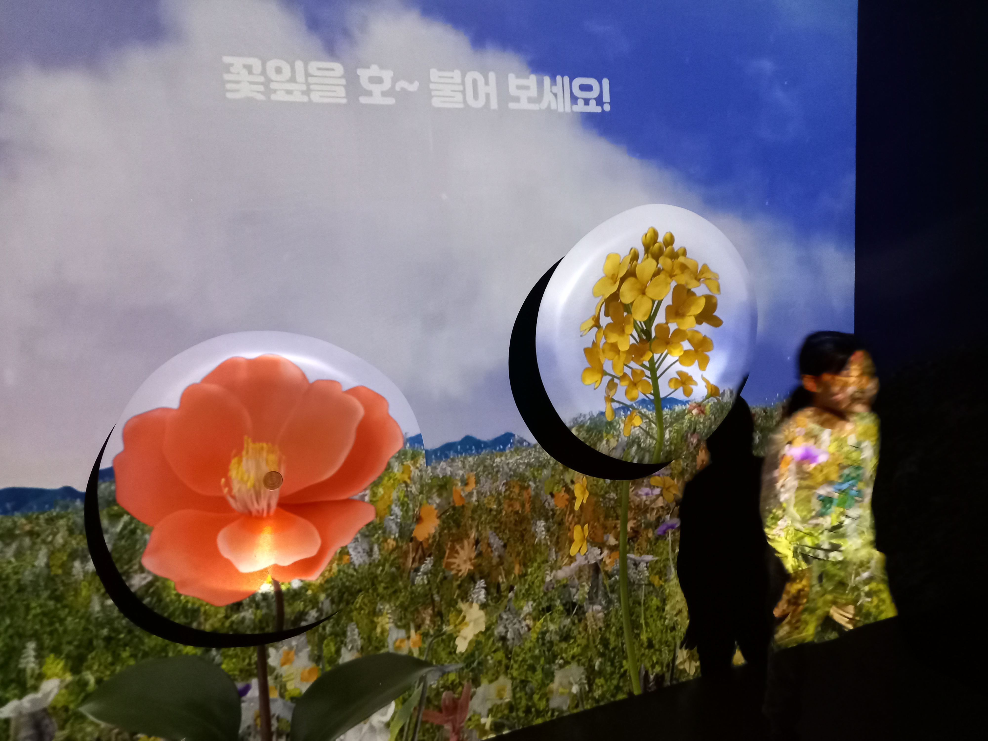꽃을 불면 꽃잎이 날린다.