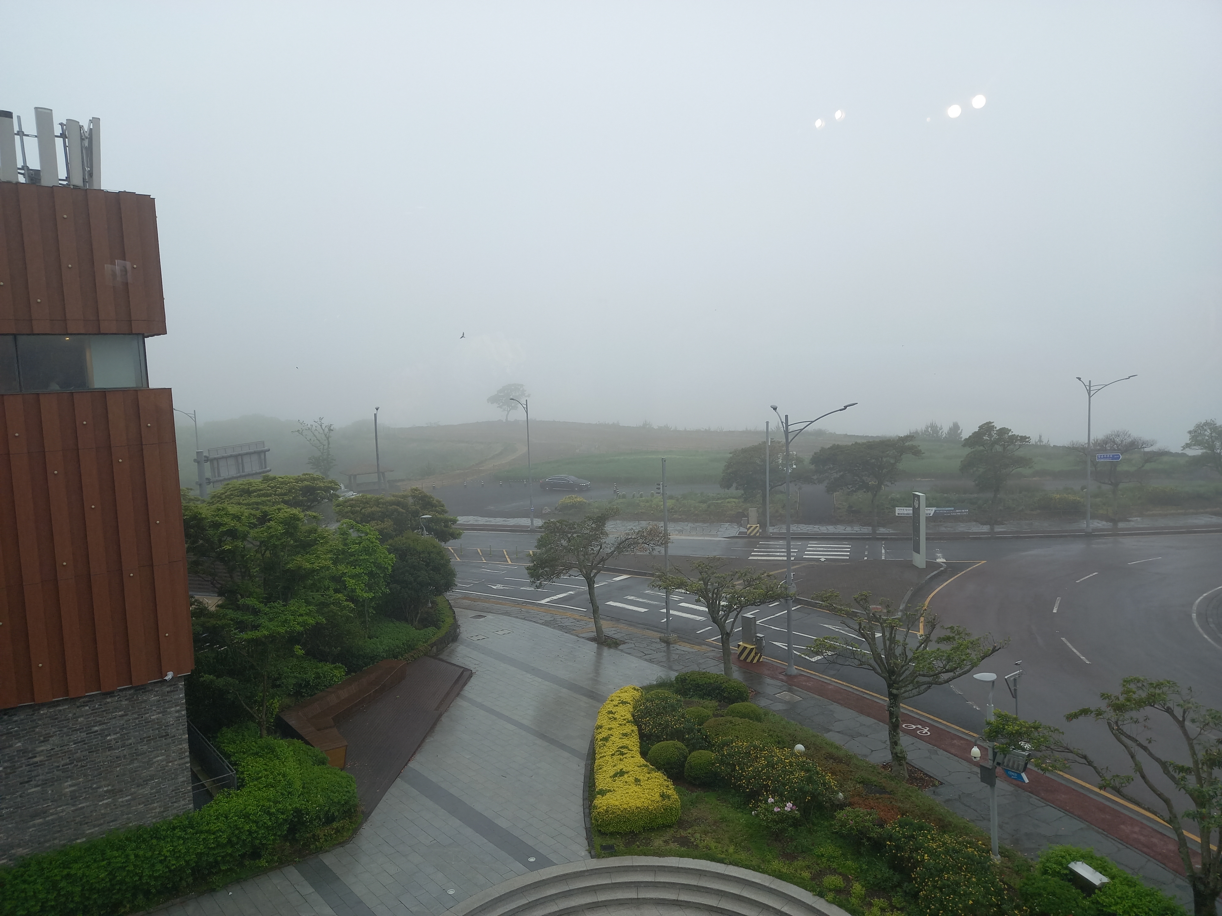 비오는 창 밖 풍경 전체적으로 중국 냄새가 난다. 중국집, 많은 한자. 대형 시설(중국이 돈이 많으니), 혹은 주인이 중국인일까? 그냥 그런 느낌이 들었다.(제주도에서 중국이라니)