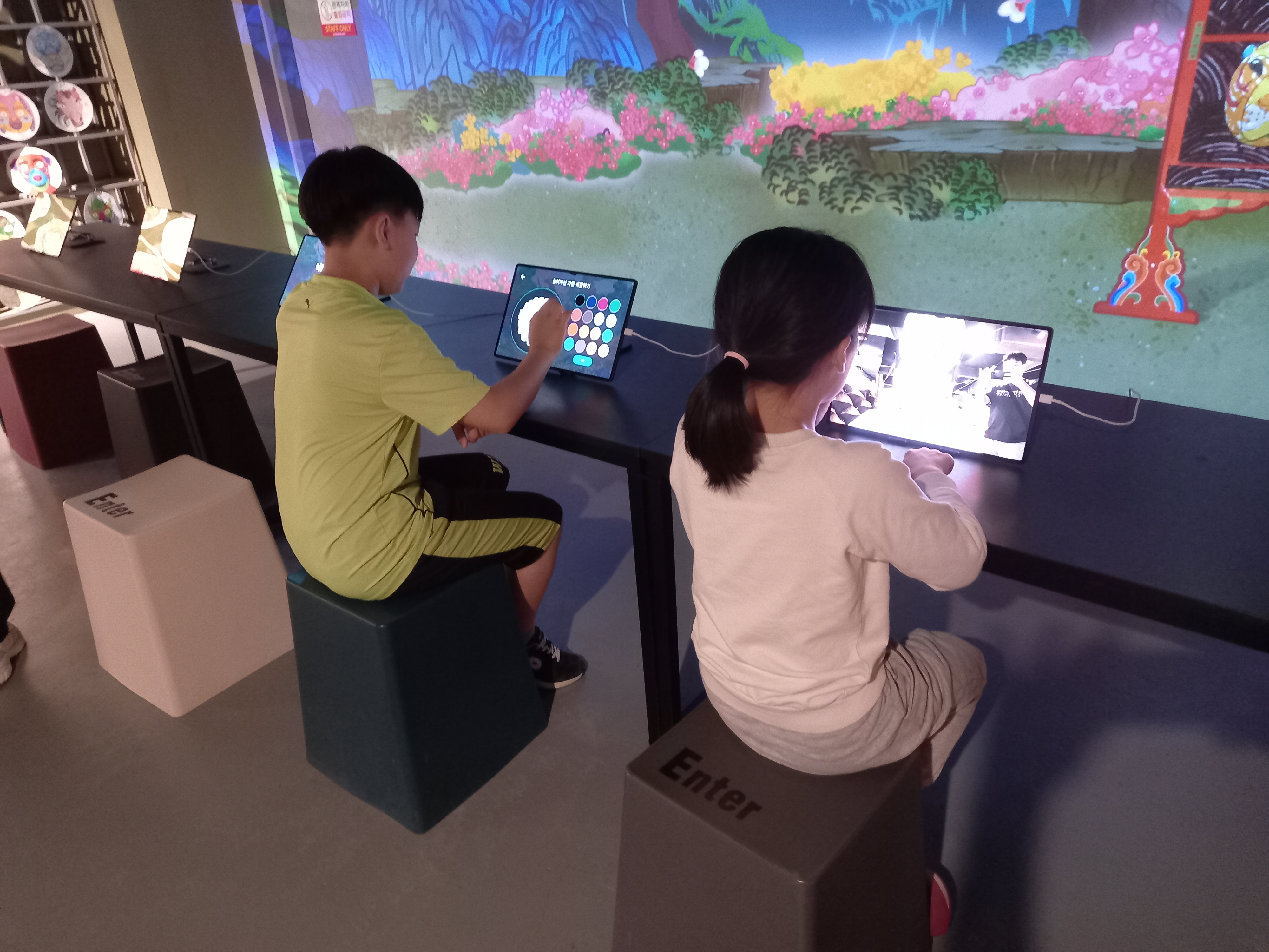 만든 가면을 대형 스크핀에서 확인할 수 있다.