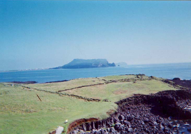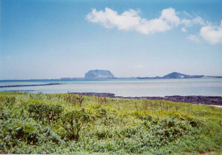 일출봉, 산을 따라 올라간다. 근데 산 모양이 신기하게 생겼다. 직사각형이라고 해야 하나. 유명 관광지라 그런지 사람들이 많다. 특히 일본사람과 중국사람이 눈이 띄인다. 여기저기서 쇼도 보여주고...기념품인 조금만 열쇠고리 하루방을 샀다. 별쓸모 없을 것 같지만 그래도 선물을 조금 해야 할 것 같아 호주머니에 넣는다. 낮이라 일출은 볼 수 없다. 하지만 산에서 보는 제주도의 모습은 아름답다.