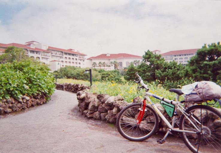문제의 찻집 다시 자전거를 타고.. 이정표에 김녕 미로 공원이라는 글이 보인다. 그래서 들어갔다. 이곳은 정말 말 그대로 미로 공원이다. 정원을 미로처럼 꾸며놔 온통 나무와 풀 뿐이다. 들어갈 때 지도를 주지만 헤어나지 못할 때 보라고 한다. 나도 처음 나오려다 결국은 지도를 보고 나왔다. 잘 만들었다고 생각했는데 말을 들어보니 디자인을 외국놈이 했다고 했다. 참 이런 것 하나 우리나라 사람 손으로 못 만들어 내나.. 또 이곳은 이영애가 해드폰 CF를 찍었던 곳이다. 뭐 래더라 '드라마'였나.. 이영애가 흔들었던 종도 나도 흔들고.. 사진도 찍고 했지만... 사진은 안 나왔다. ㅠㅠ. 역시 일회용 카메라는 믿을 만한 것이 못돼