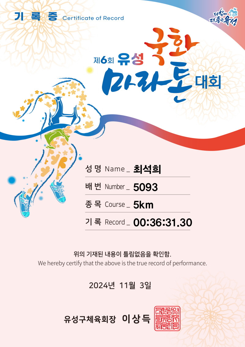 중간에 도저히 안될 것 같아 5km로 낮추긴 했지만, 그래도 역시 쉽지 않았다.