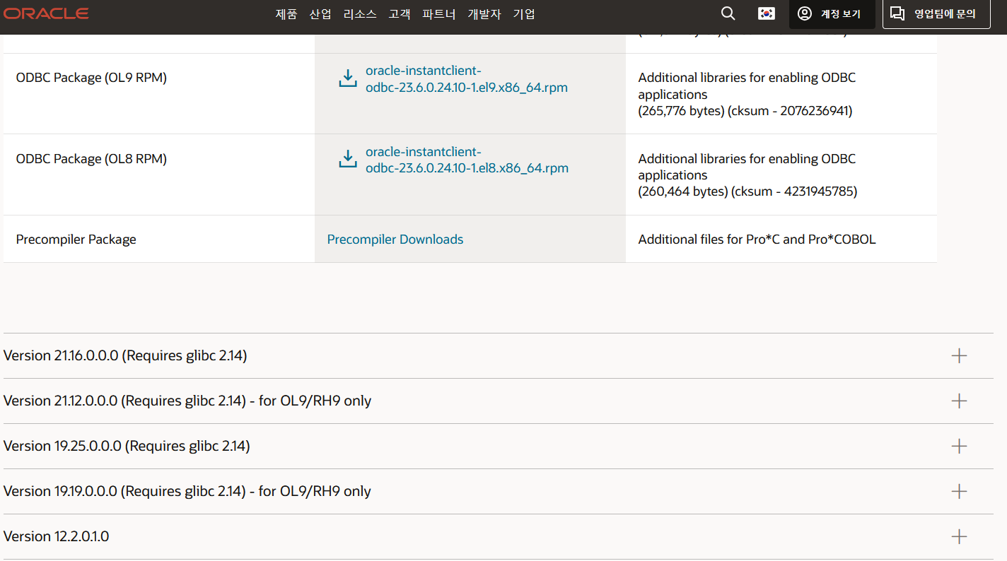 https://www.oracle.com/kr/database/technologies/instant-client/linux-x86-64-downloads.html