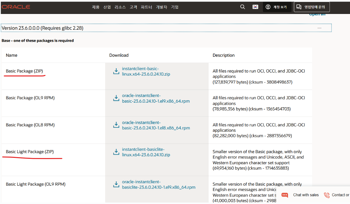 https://www.oracle.com/kr/database/technologies/instant-client/linux-x86-64-downloads.html