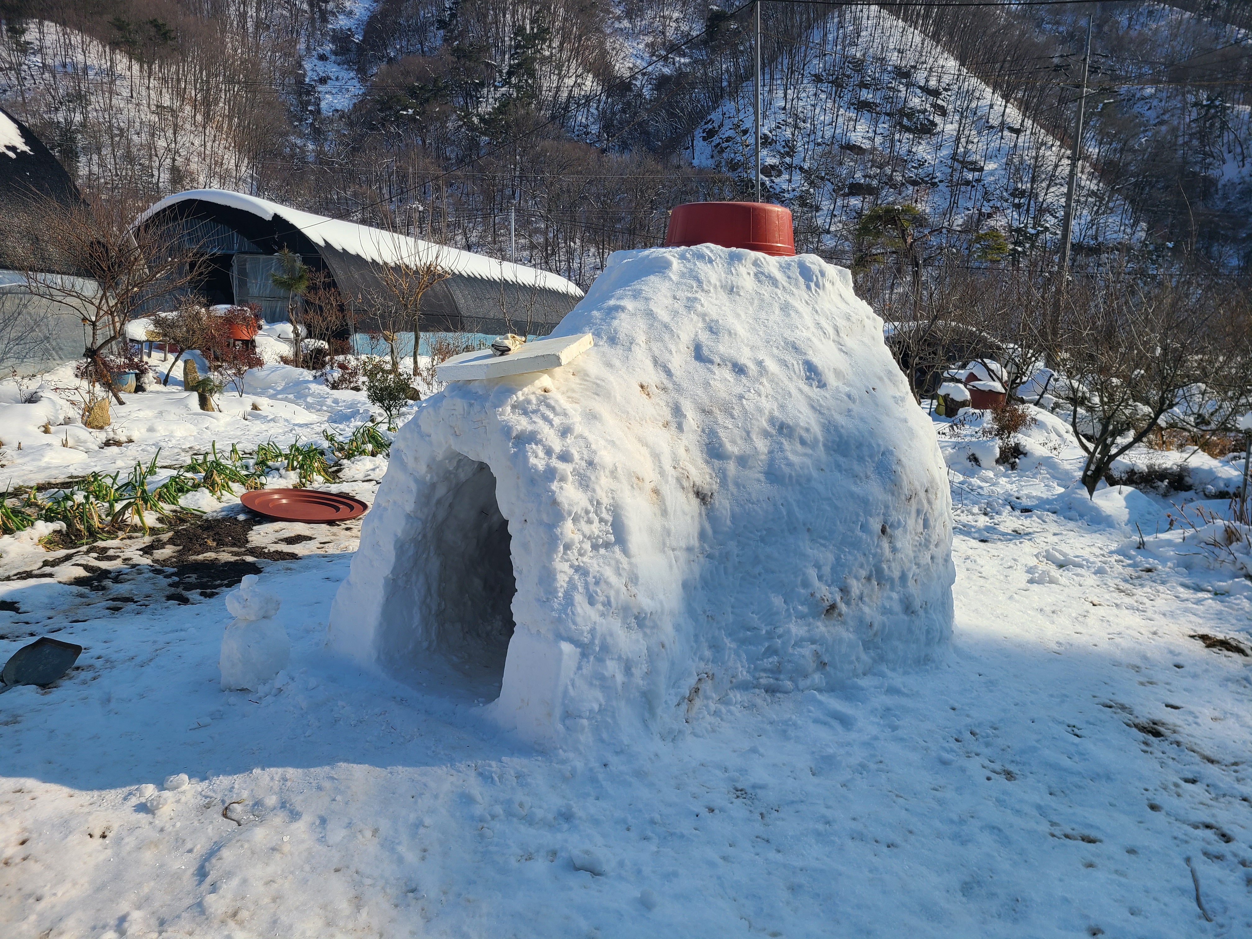 김치통에 눈을 얼려 만드셨다고 하는데, 그만큼 눈이 많이 왔다는 반증이다.
