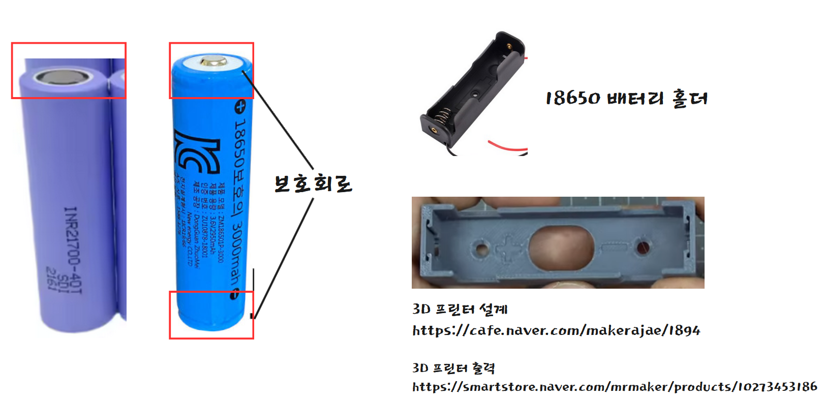배터리는 보통 배터리 홀더라는 것을 이용해서 사용한다. 국내도 많은 18650배터리 홀더를 판매하는데 보호회로용 배터리 홀더라고 홍보는 하지만 실제로는 그냥 18650 배터리 용 배터리 홀더를 판매하는 것 같다. 후기가 모두 빡빡하다고 안 좋게 남겨져 있다.