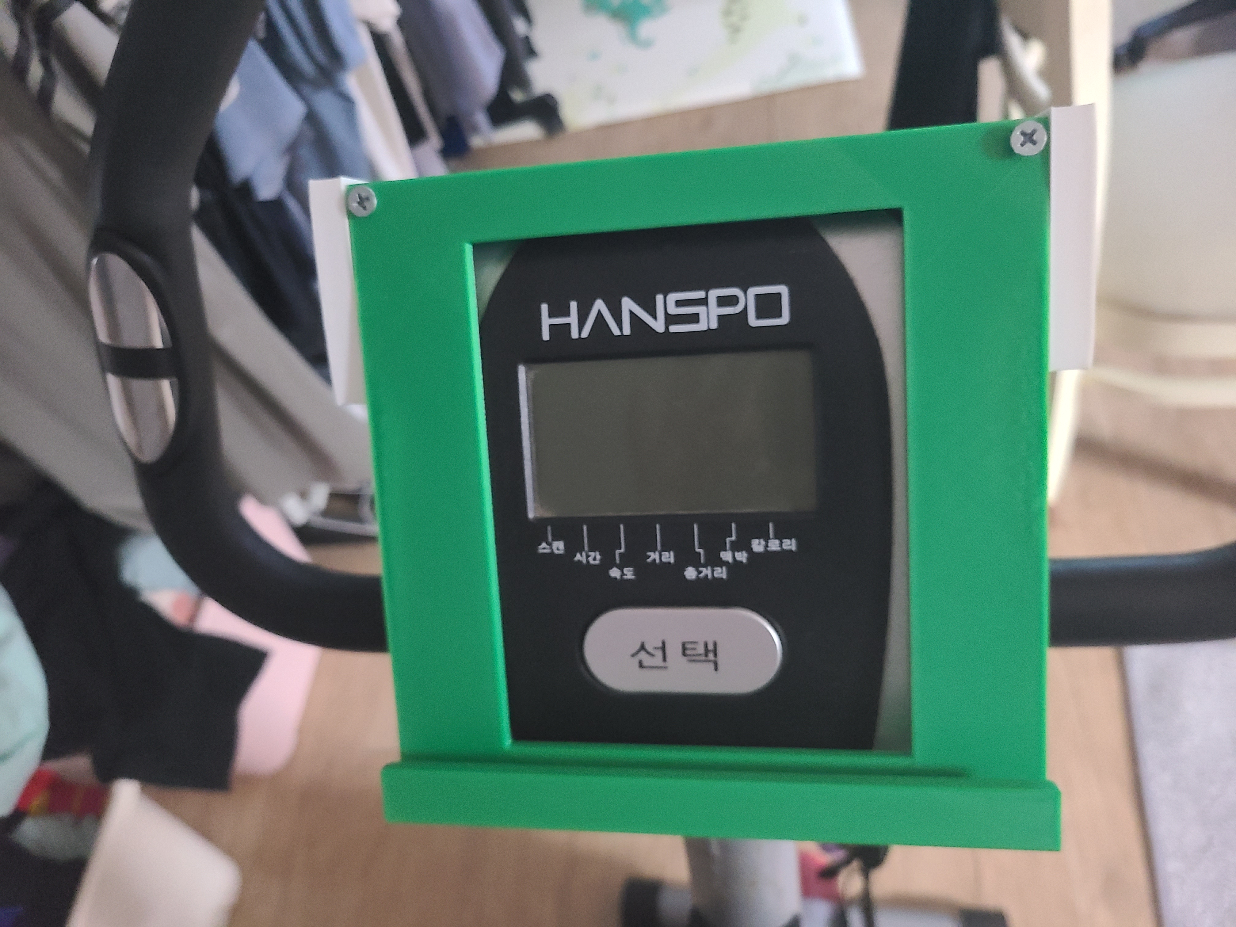 자전거 중앙 부분의 '선택' 버튼이 있는데, 오래 누르고 있으면 값들이 초기화 된다. 그런데 태블릿을 올리면 태블릿 지지대에 눌려서 '선택' 버튼이 눌리고 초기화 되는 경우가 종종 있었다.
