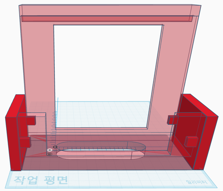 그리고 출력물이 배드보다 커서 한 번에 출력하지 못했다. 그래서 양 옆의 모서리는 별도로 출력해서 붙였다. 저번에 테스트한 것처럼 중간에 홈을 파고 홈의 간격을 0으로 주면 결합부가 빡빡하기 때문에 한 번 붙여 놓으면 떨어지지 않는다.