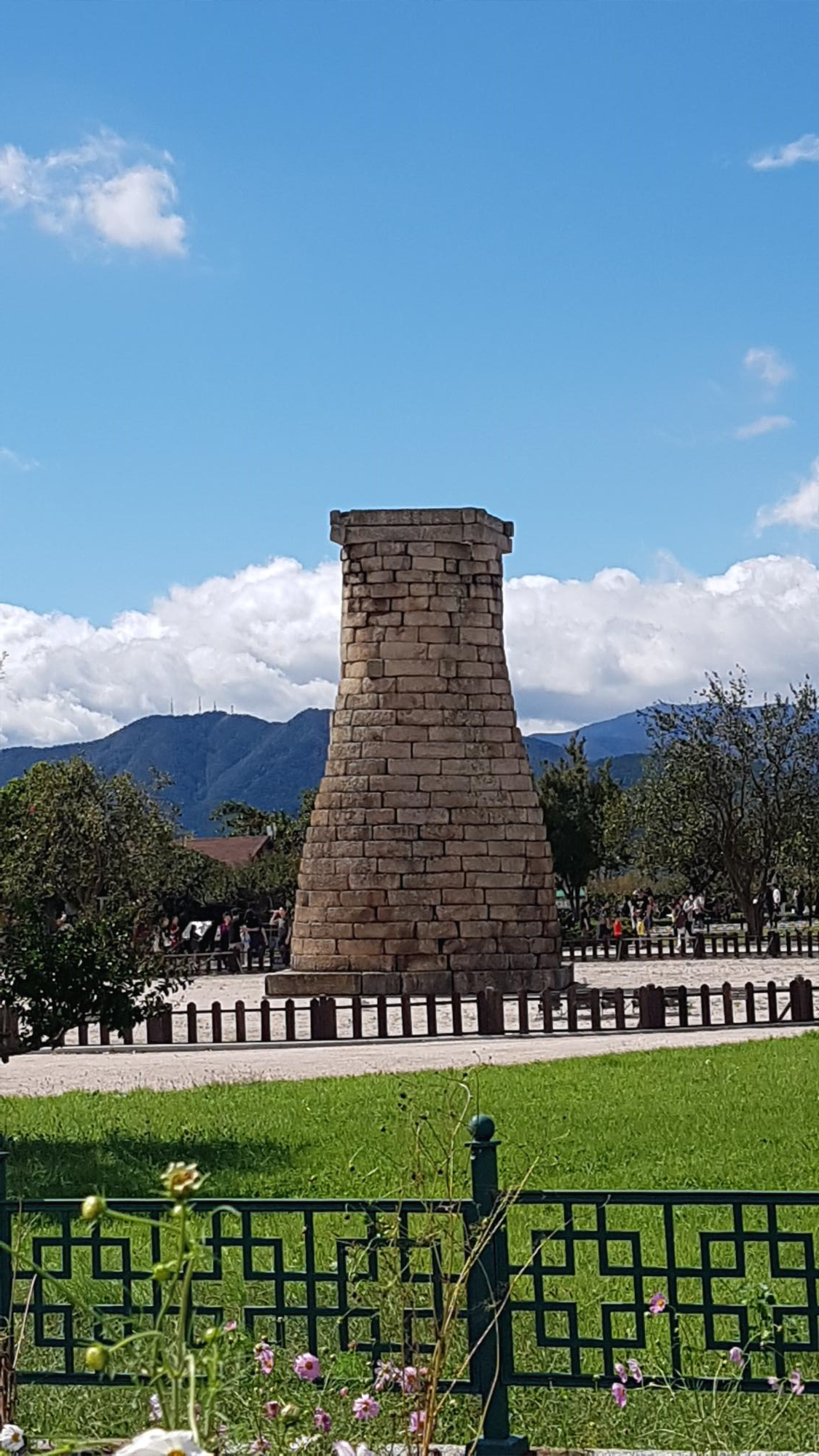 핑크뮬리를 지나면 바로 첨성대이다. 첨성대는 입장료를 내면 바로 앞까지 갈 수 있다. 우리는 멀리서 사진을 찍는다.