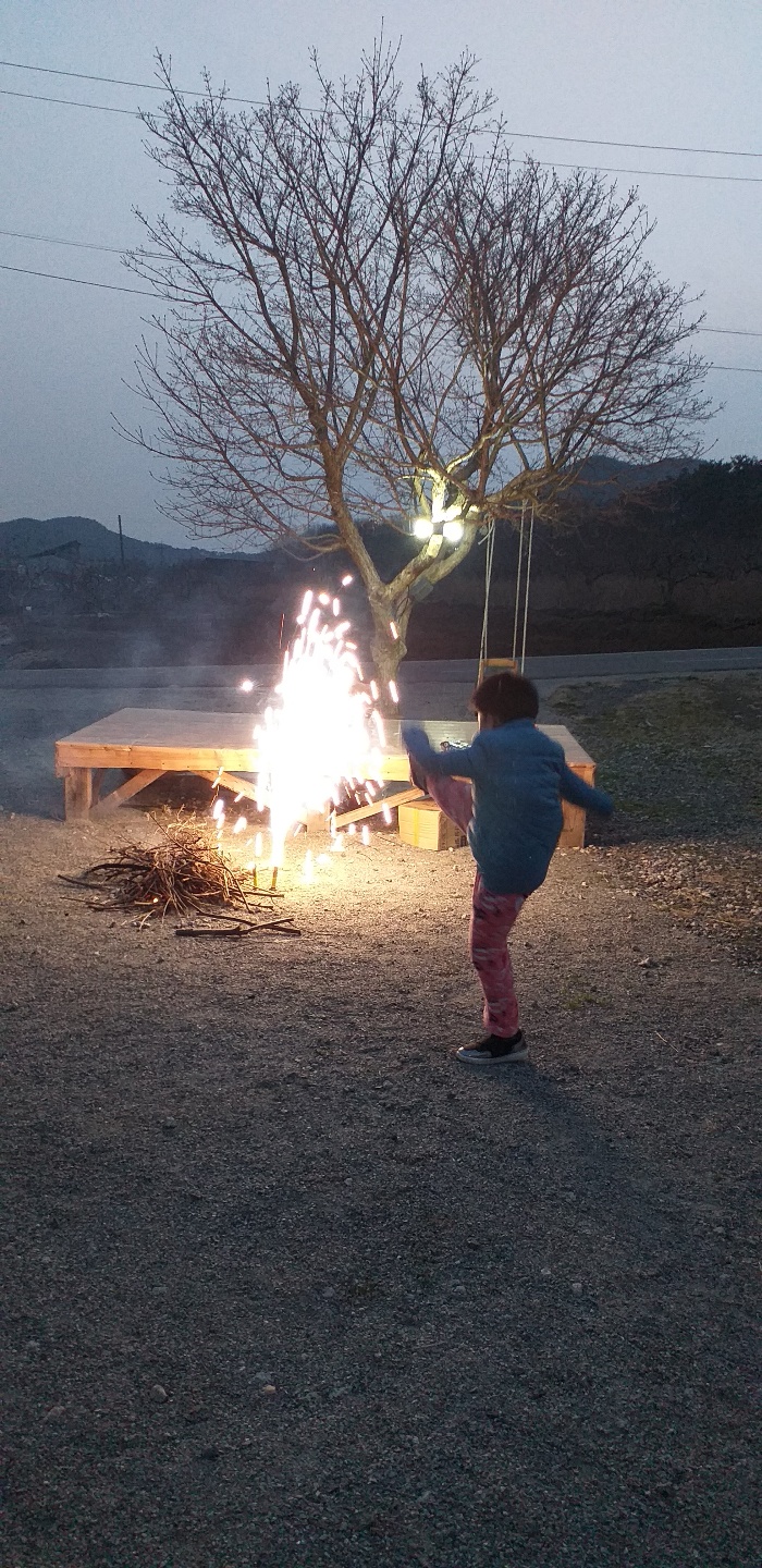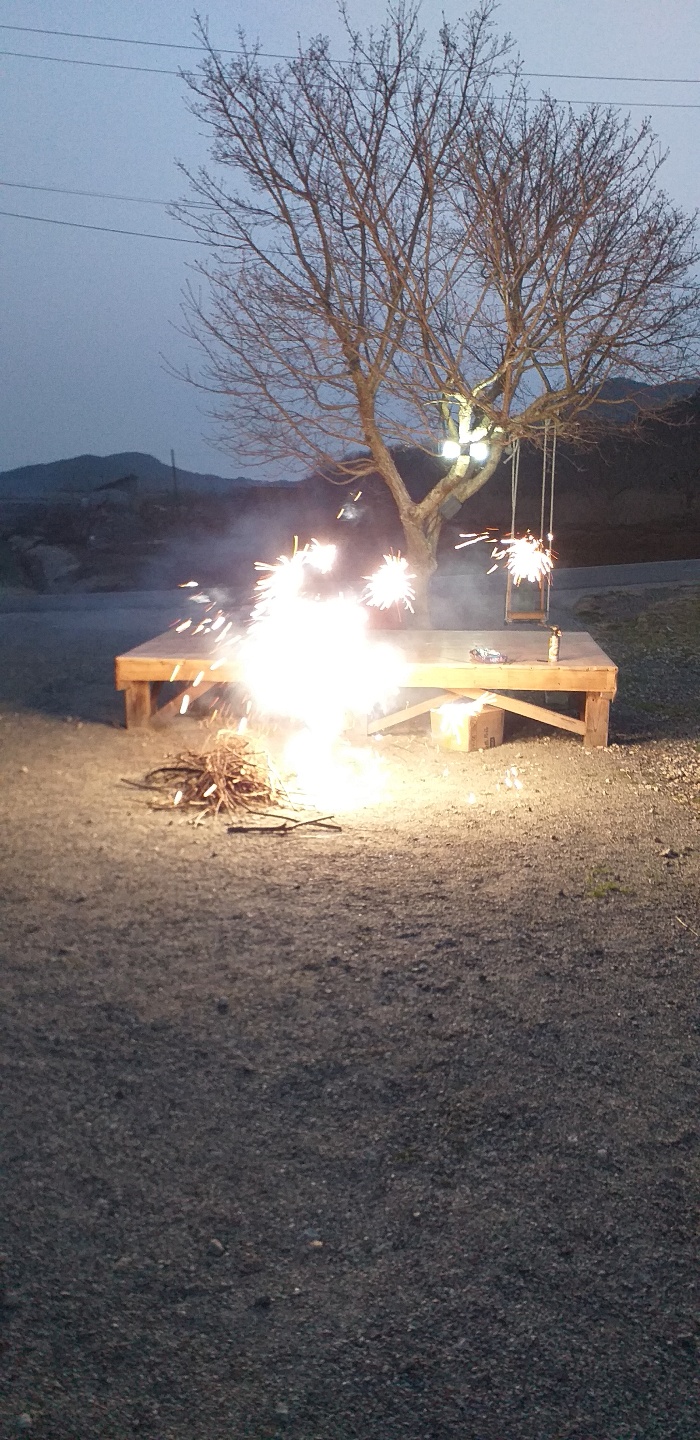 분수형 불꽃과 손에 들고 흔드는 불꽃놀이를.