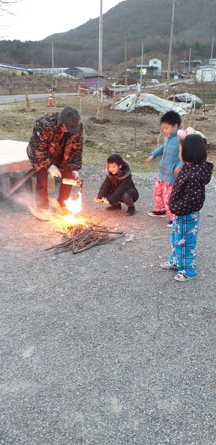 나무가 완전히 마르지 않아 금방 꺼질꺼라고도 했지만, 아이들은 괜찮다고 했다.