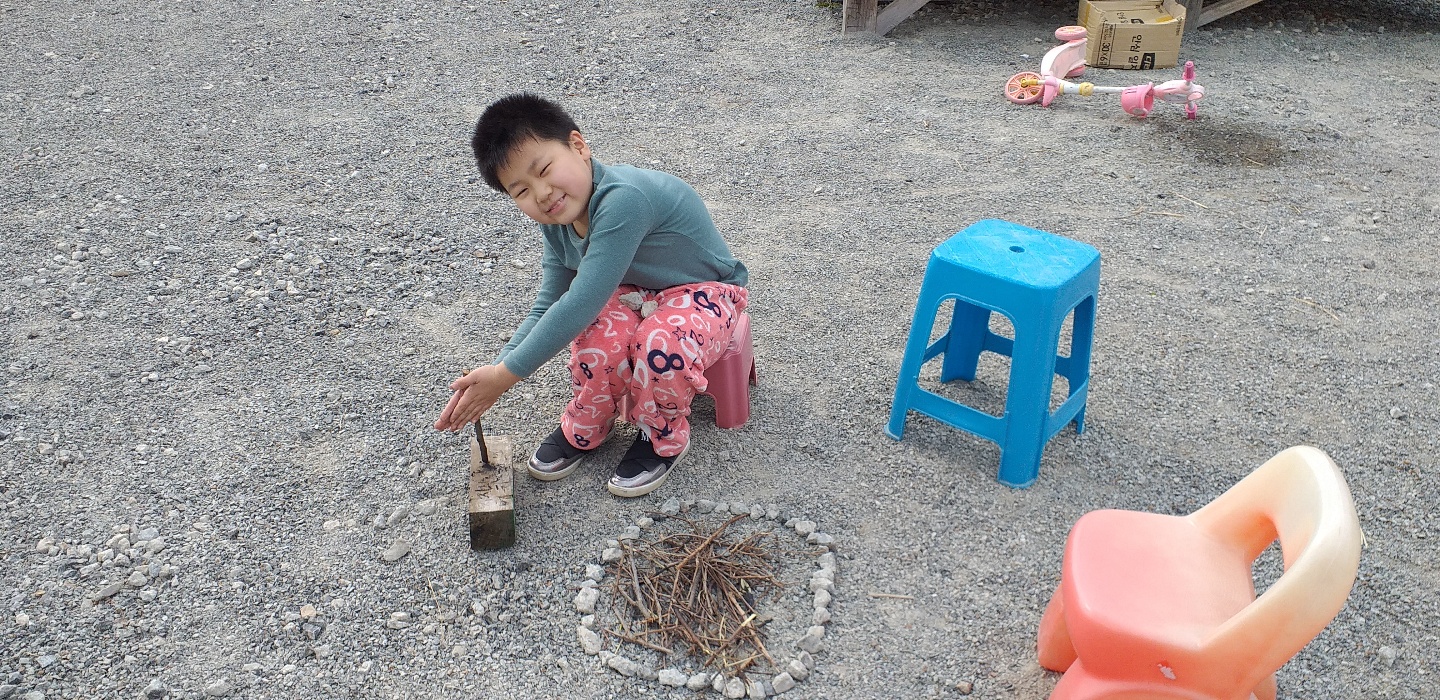아이들은 어디선가 나무를 구해오고 불을 붙여 달라고 한다.