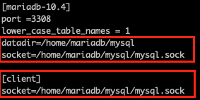 datadir과 socket 위치를 추가하자.