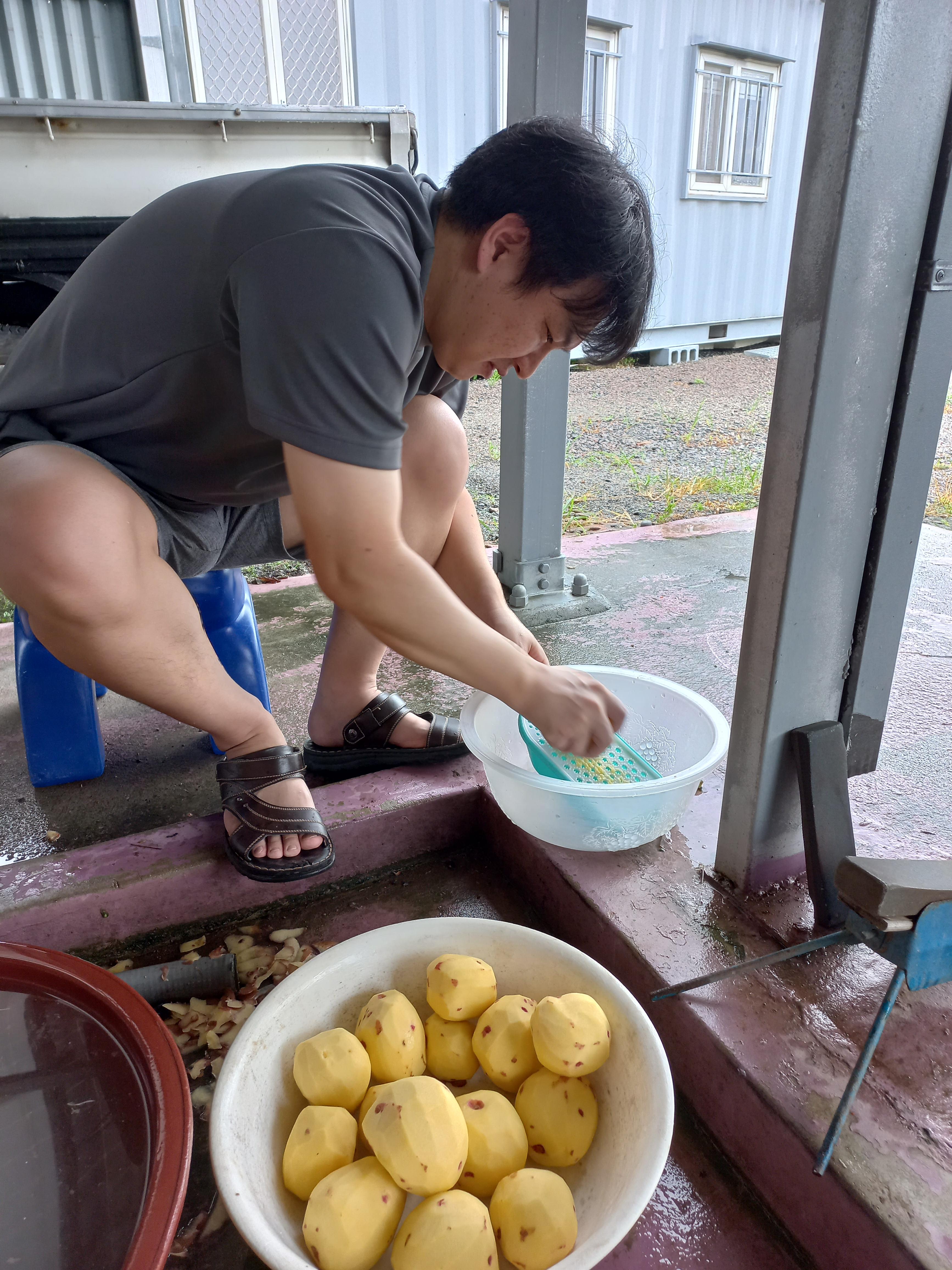 붉은 감자라고 했는데, 일반감자와는 다르게 깎아 놓으니 노란색이었다.