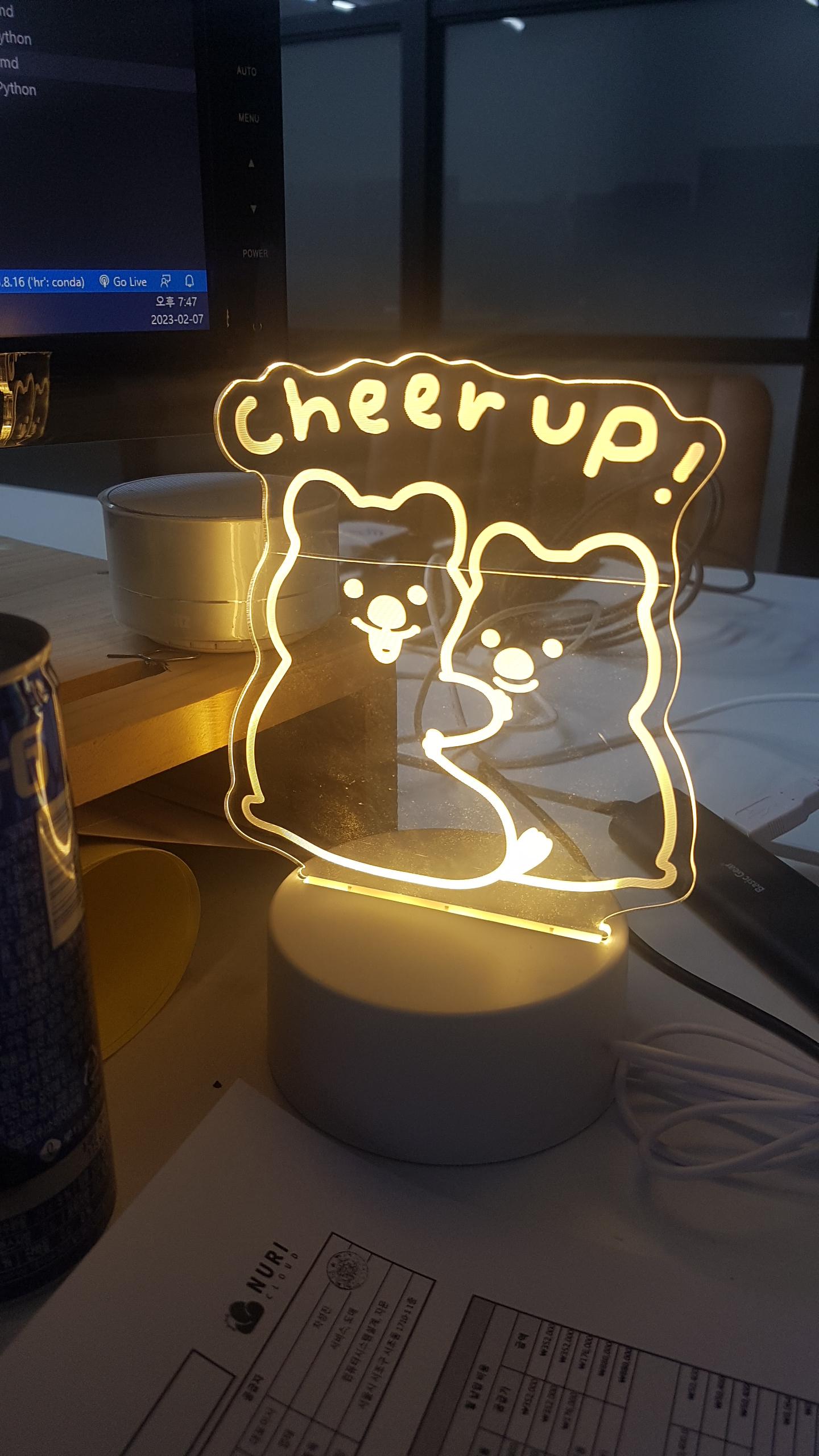 생일선물로 받은 것인데, 아크릴이고 밑에서 빛이 나와 아름답게 비춰준다.
