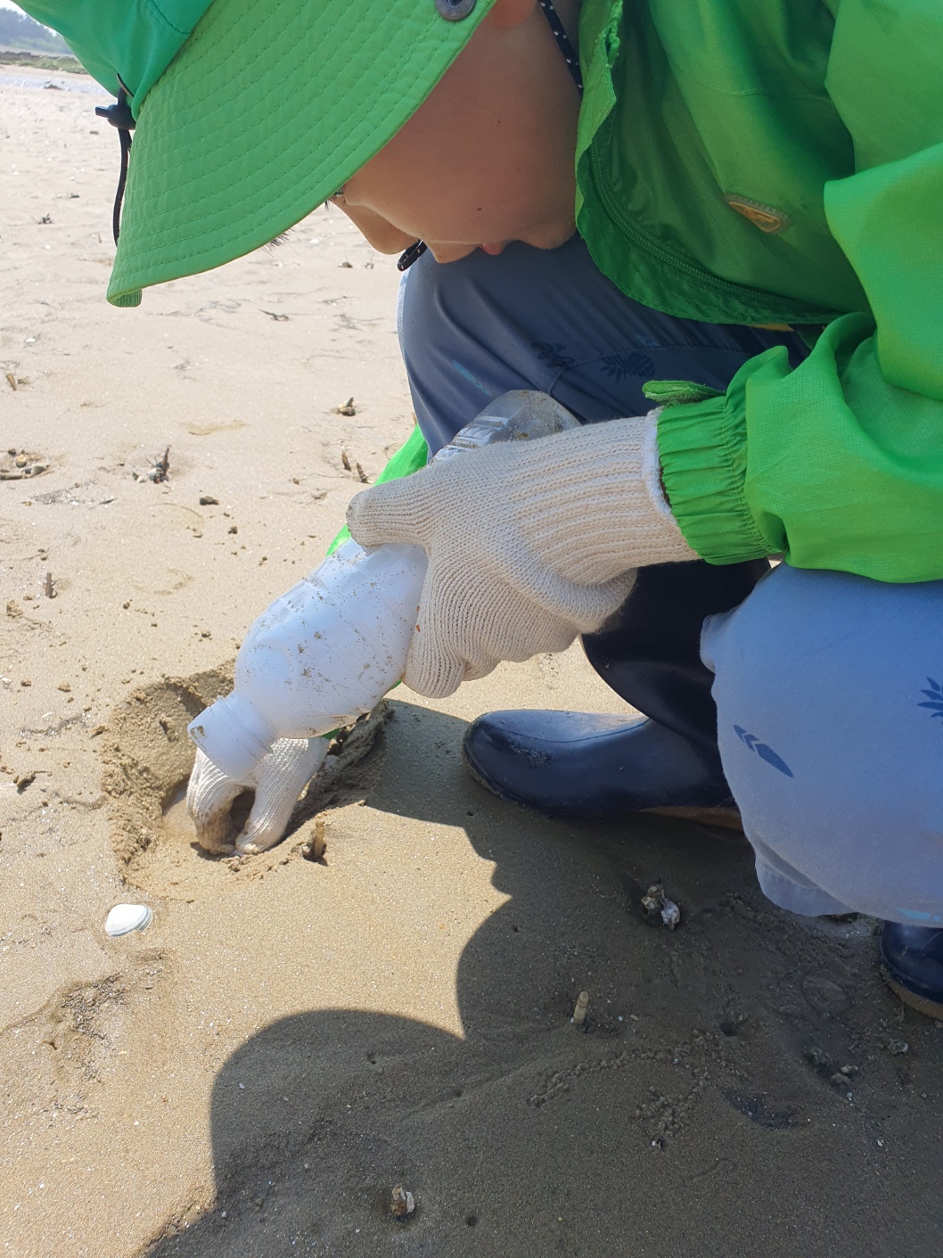 물병에 소금을 넣고, 조개 캘 수 있는 것(?), 삽, 작살등을 준비한다.