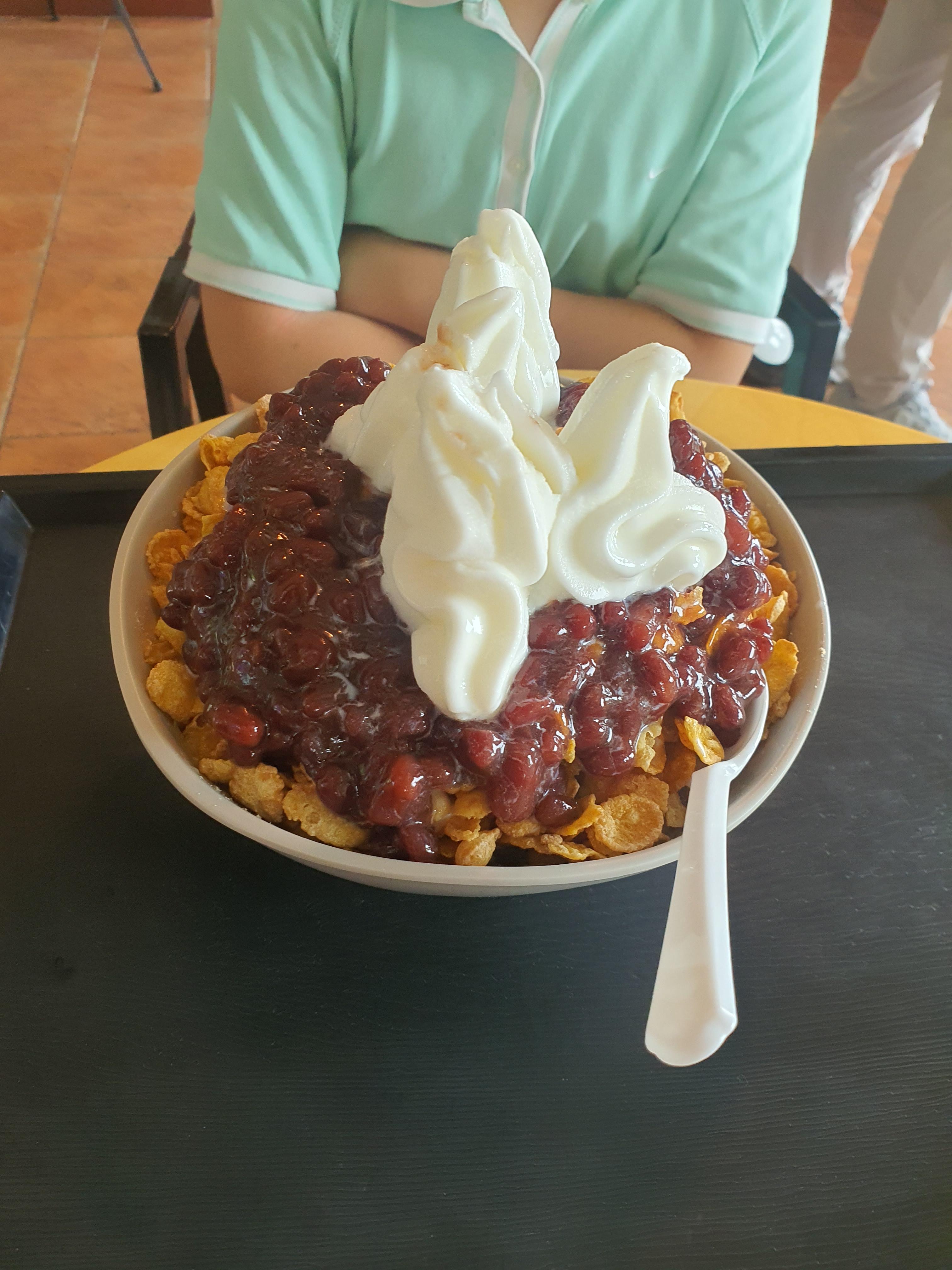 비가 조금씩 왔는데, 날도 더웠다. 매점에서 팥빙수를 시켜 먹었다.
