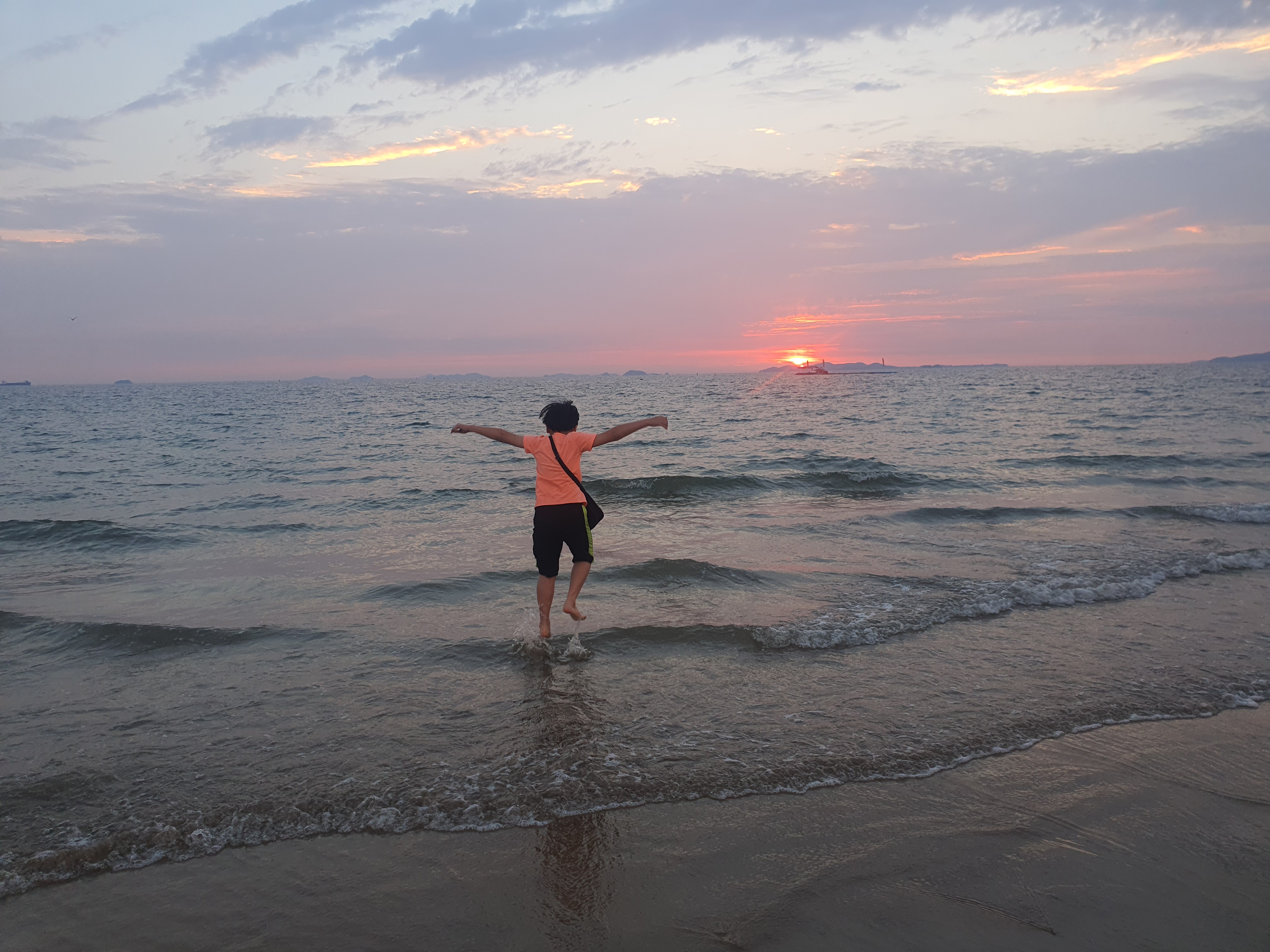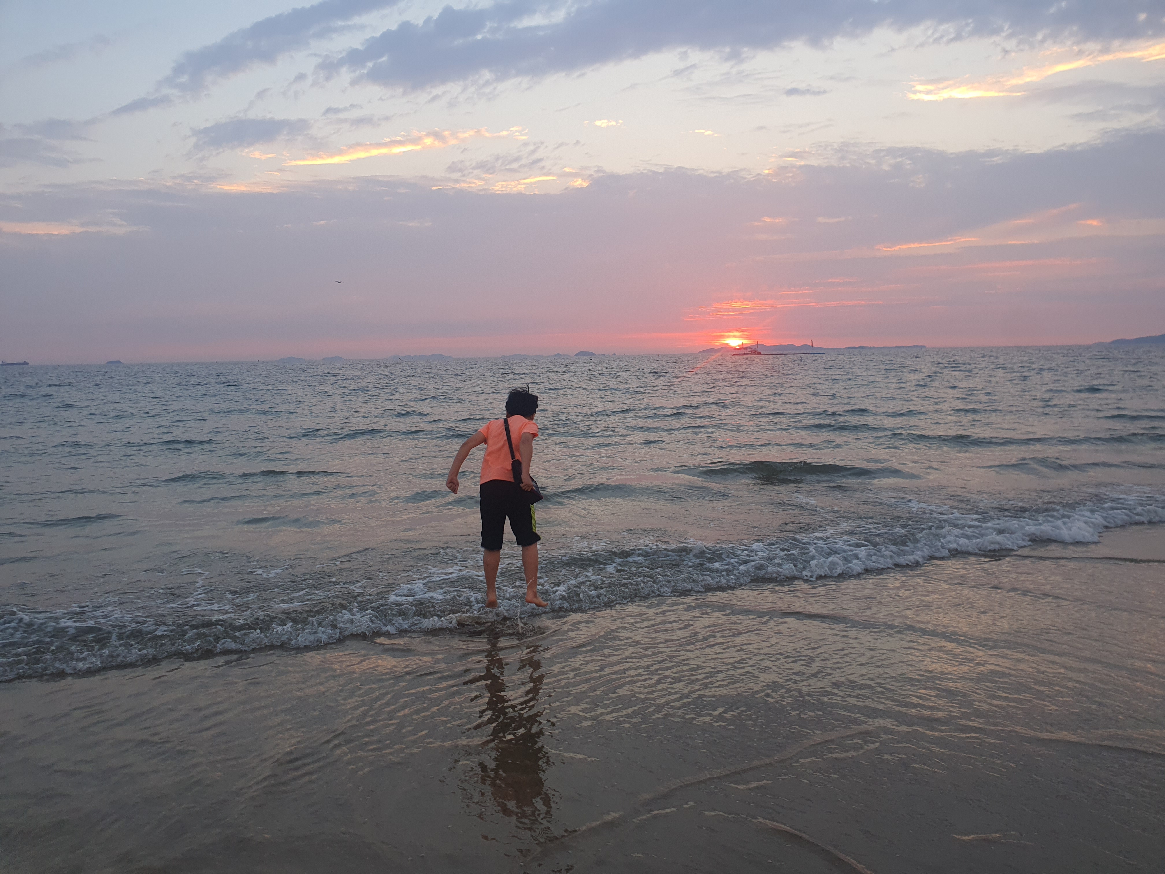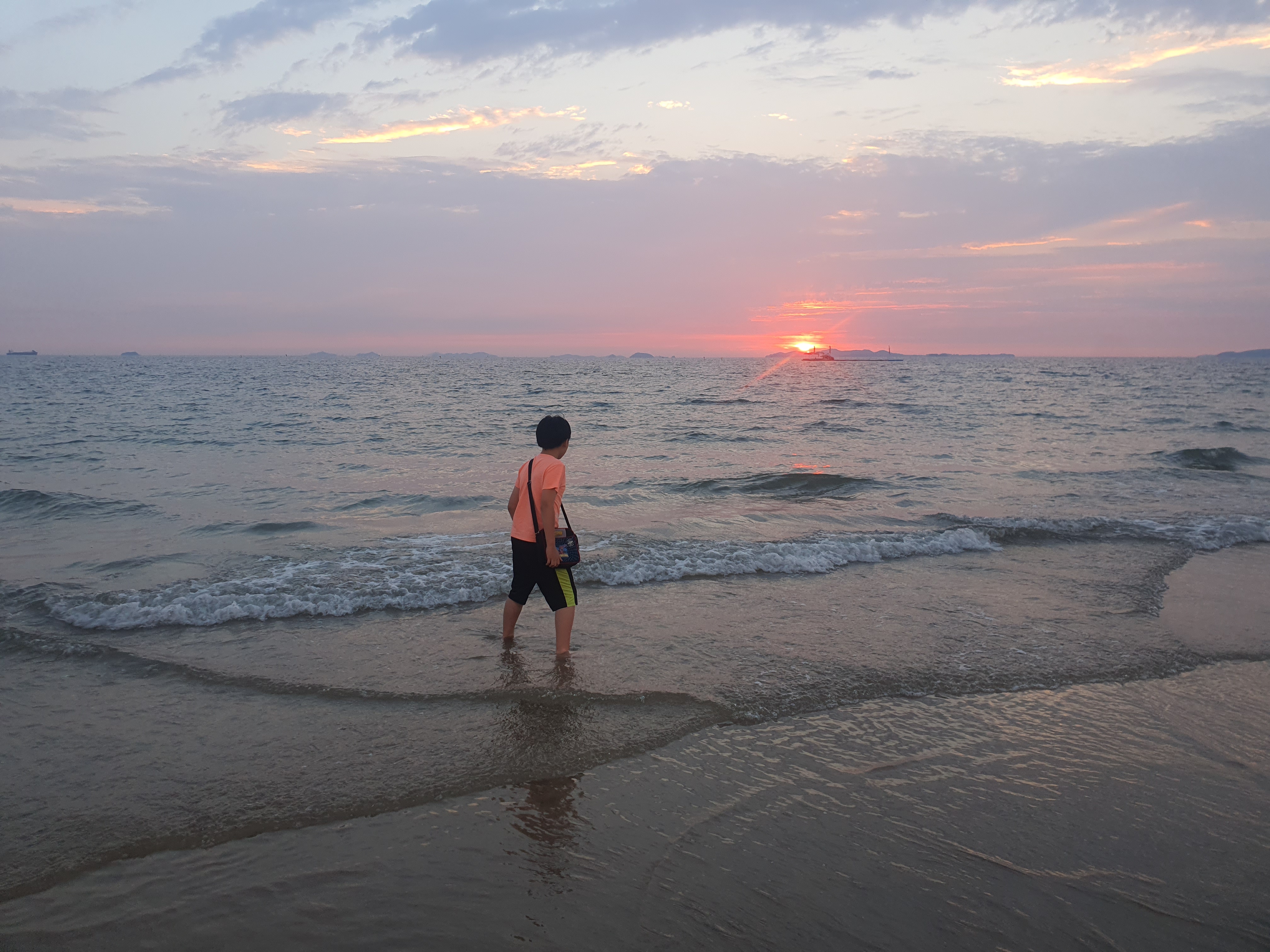 대천으로 온 이유는 어릴적 기억으로 저녁에 해수욕장에서 본 노을이 너무 이뻐서 다시 한번 보고 싶었기 때문이다. (여기 해수욕장은 아니다) 이글이글 타오르는 그때의 감정은 다시 느낄 순 없지만, 아이에게 전해주고 싶었다.