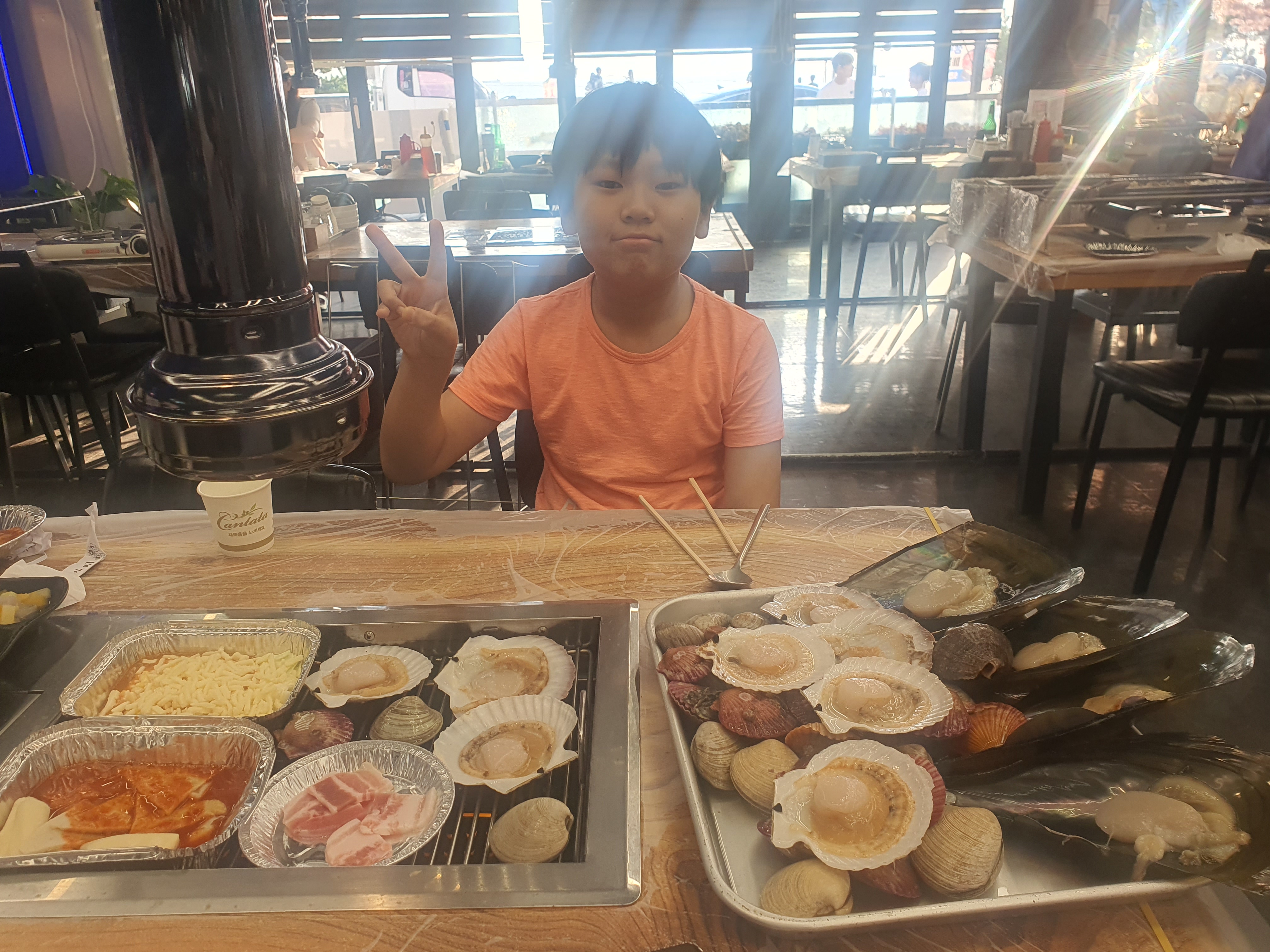 저녁은 아들이 조개구이를 먹자고 했다. 예전에 조개구이 먹었던 기억이 나서 먹고 싶다고 했다. 사실 어른과 아이 한 명으로 먹기에는 조금 부담스러운 가격이었다. 출발 전에는 간단한 칼국수를 생각하고 있었는데, 갑자기 조개구이가 나와서 잠시 당황했다. 그래도 생각을 고쳐먹고 모든 것을 하게 해줄 요량으로 조개구이를 먹었다. 예상대로 아이가 먹는 양은 어느 정도 한계가 있었다. 그 모든 것을 내 한계로 메꿨다. ㅋㅋ 배가 매우 불렀다.