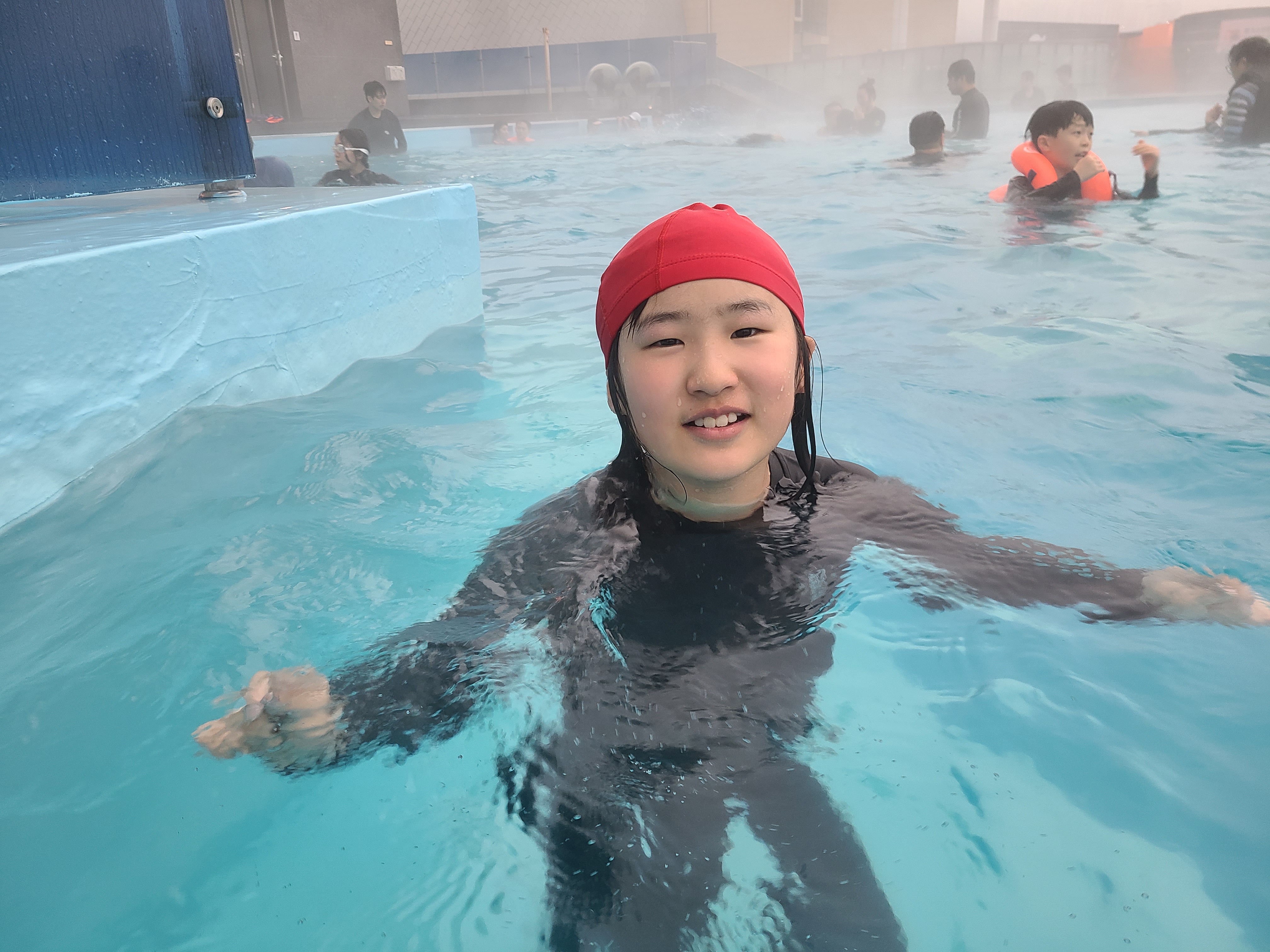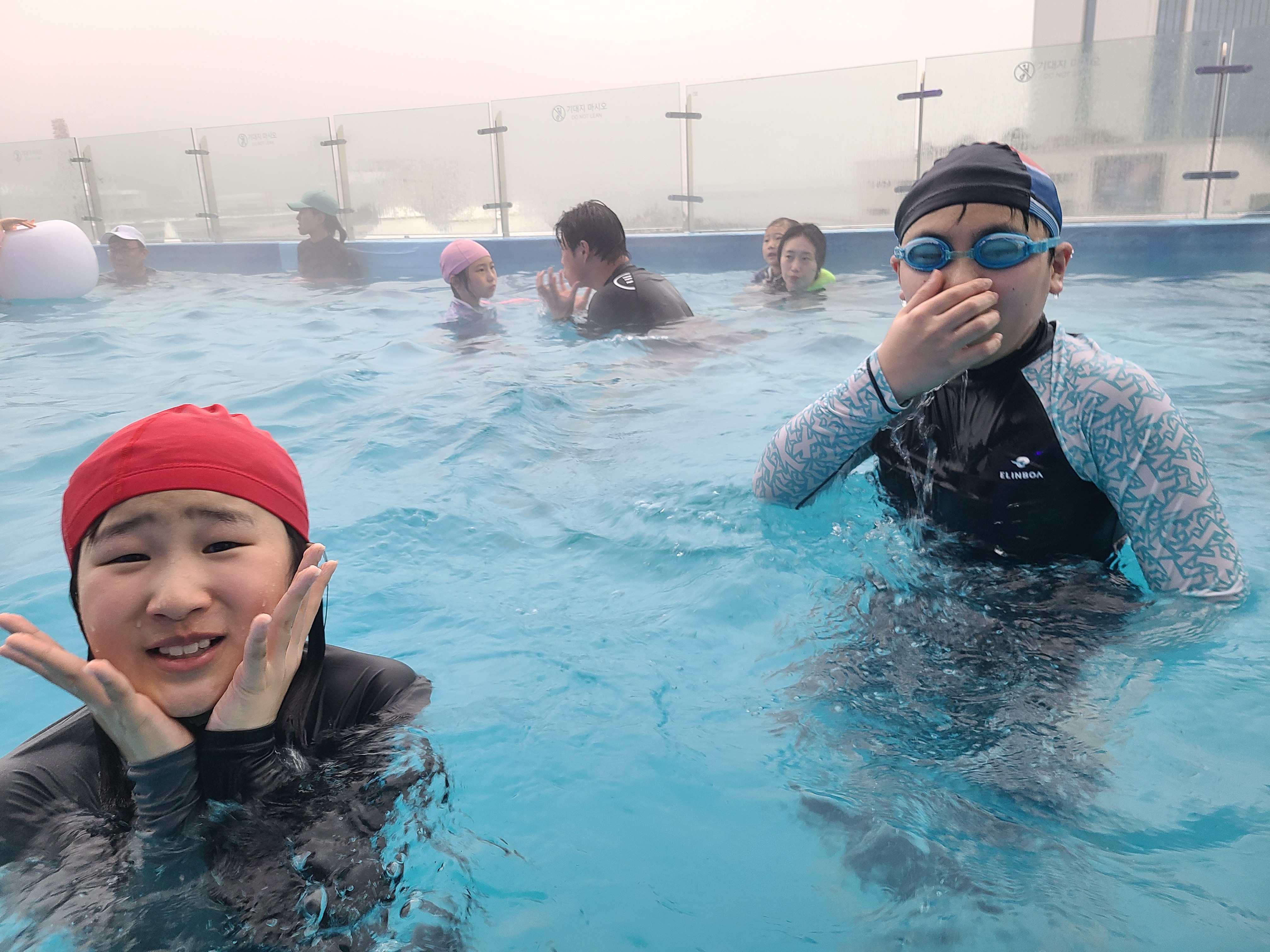 실외 수영장인데, 비가 오고 있음에도 물이 매우 따듯했다. 물밖은 정말 추웠고 한 번 들어가면 나오기 쉽지 않은 온도다.