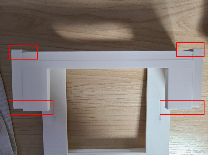 그리고 출력물이 배드보다 커서 한 번에 출력하지 못했다. 그래서 양 옆의 모서리는 별도로 출력해서 붙였다. 저번에 테스트한 것처럼 중간에 홈을 파고 홈의 간격을 0으로 주면 결합부가 빡빡하기 때문에 한 번 붙여 놓으면 떨어지지 않는다.