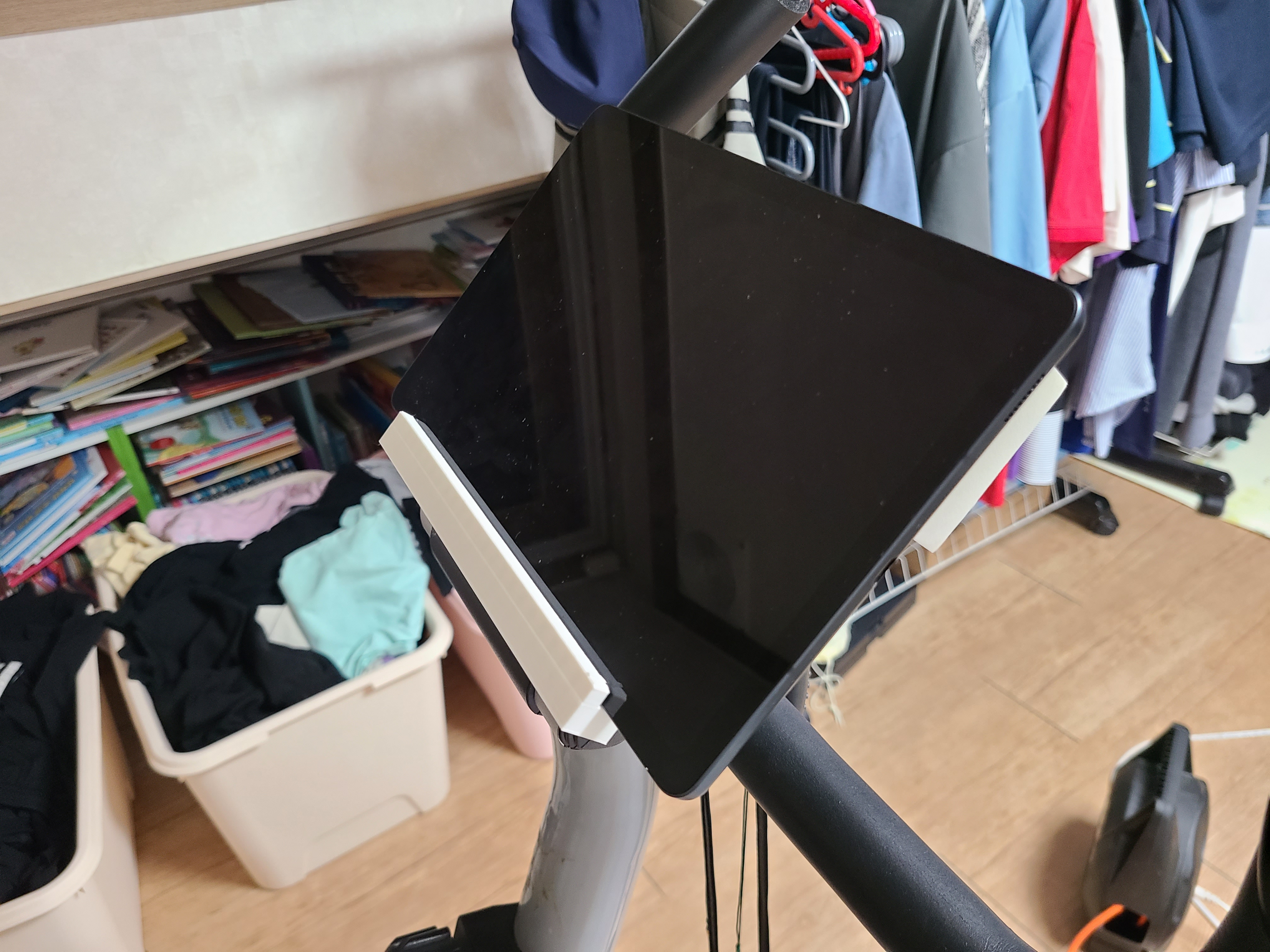 요즘엔 거의 타지 않지만, 운동용 자전거의 태블릿 거치대를 만들었다.